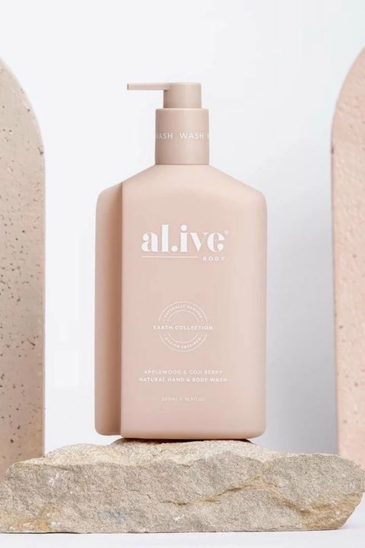 The al.ive body Applewood & Goji Berry Hand & Body Wash contains a luxurious blend of naturally derived ingredients, fortified with essential oils and native botanical extracts.