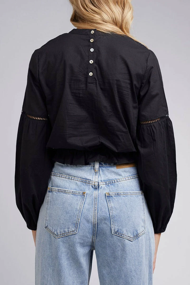 All About Eve Isla Black Poplin High Neck Lace Blouse