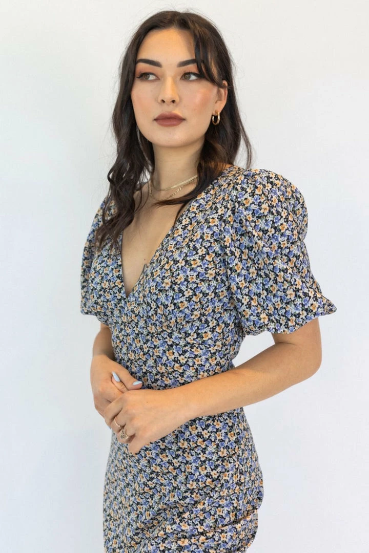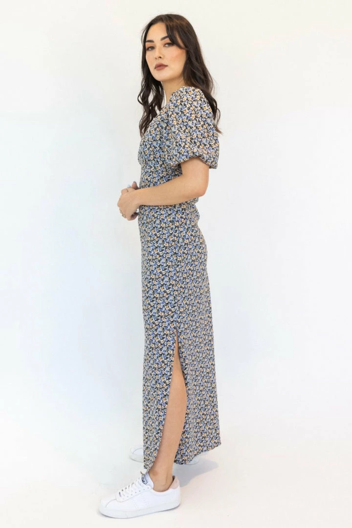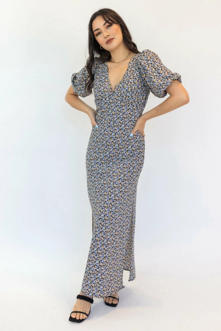 This dress will easily take you from day to night. The Amora dress from Among the Brave is a gorgeous short sleeve maxi dress with short puff sleeves and two side slits. Style this piece with sneakers and a jacket or dress it up with heels and a blazer.