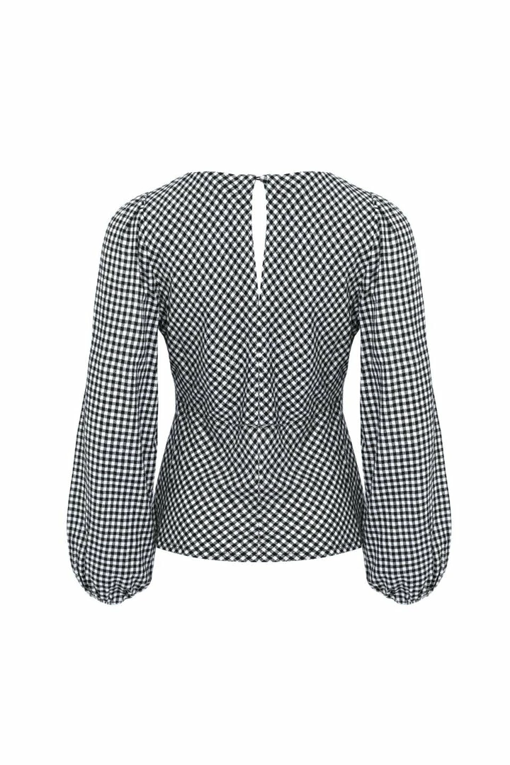 Among The Brave Bailey Black Gingham LS Balloon Sleeve Panel Bodice Bias Top Fashion