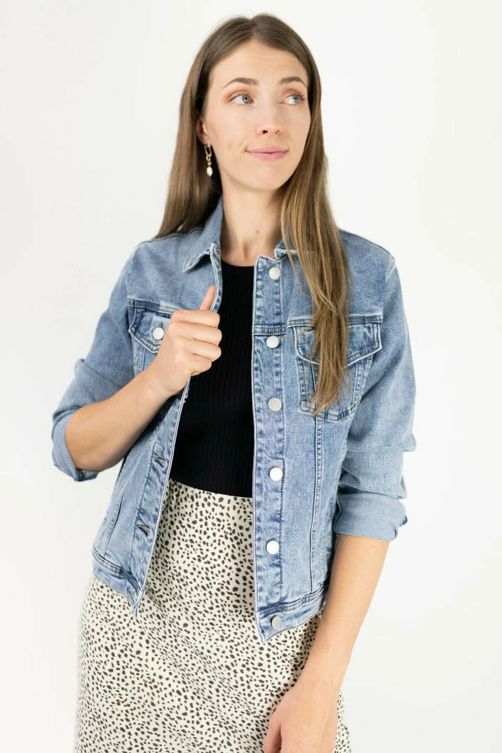 The stylish jean jacket that your outfit has been missing! With its classic design and flattering fit, you can be fashionably ready for cooler weather with this Charlie Denim Jacket. Also a great choice if you don’t want to carry a handbag, this jacket has plenty of pocket space for all of your essentials without being bulky!