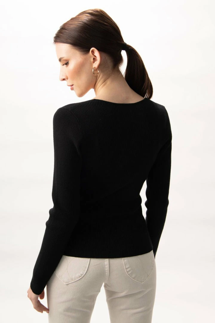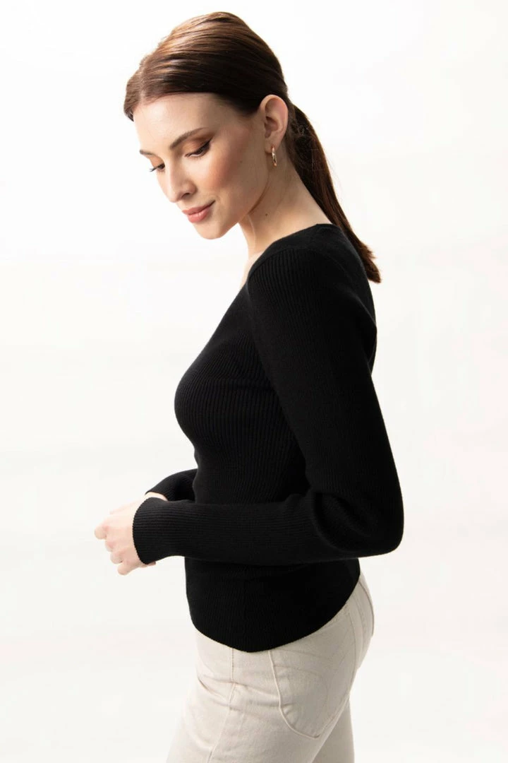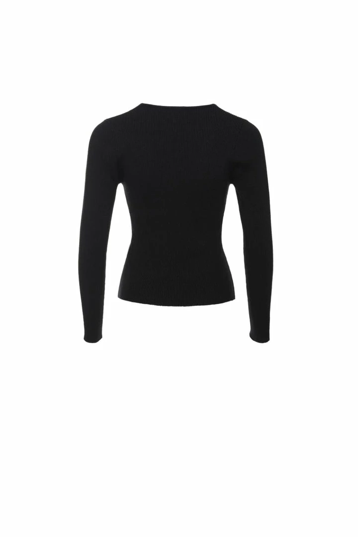 Among The Brave Desire Black LS V Neck Rib Knit Top