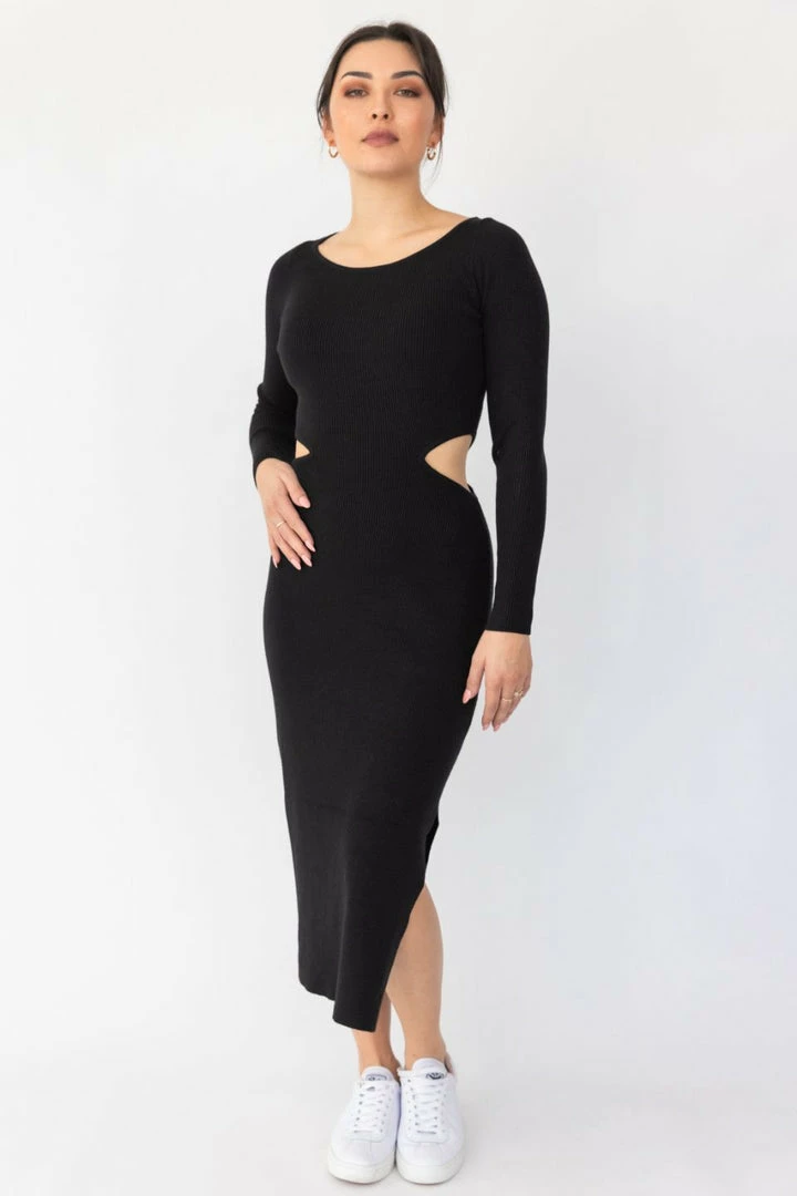 You’ll fall in love with our Angelica Dress! Understated but elegant, this bodycon midi features mid waist cut outs and a side slit. Wear it out to a special event with heels and a blazer or our for lunch with a pair of sneakers.