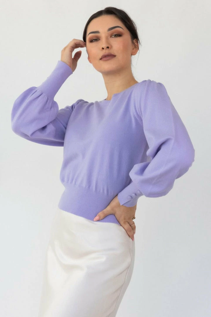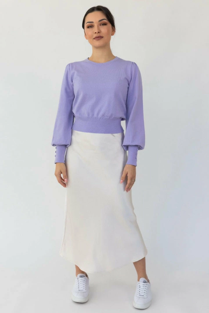 Among The Brave Fashion Madison Lilac Deep Button Cuff Crop Knit Top