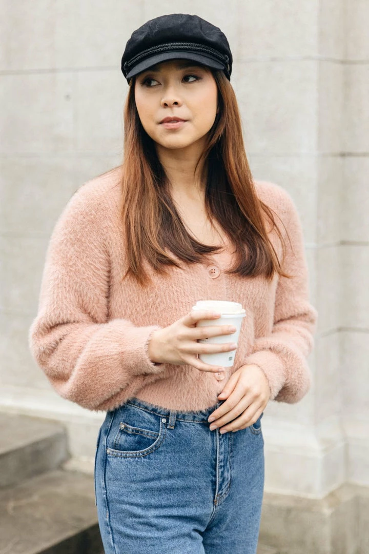 Fall deeply in love with our Tender Knit! Featuring its gorgeous fluffy eyelash yarn, soft fitted cuffs, and bouncing crop fit. It’s one to keep you cosy and stylish this season.