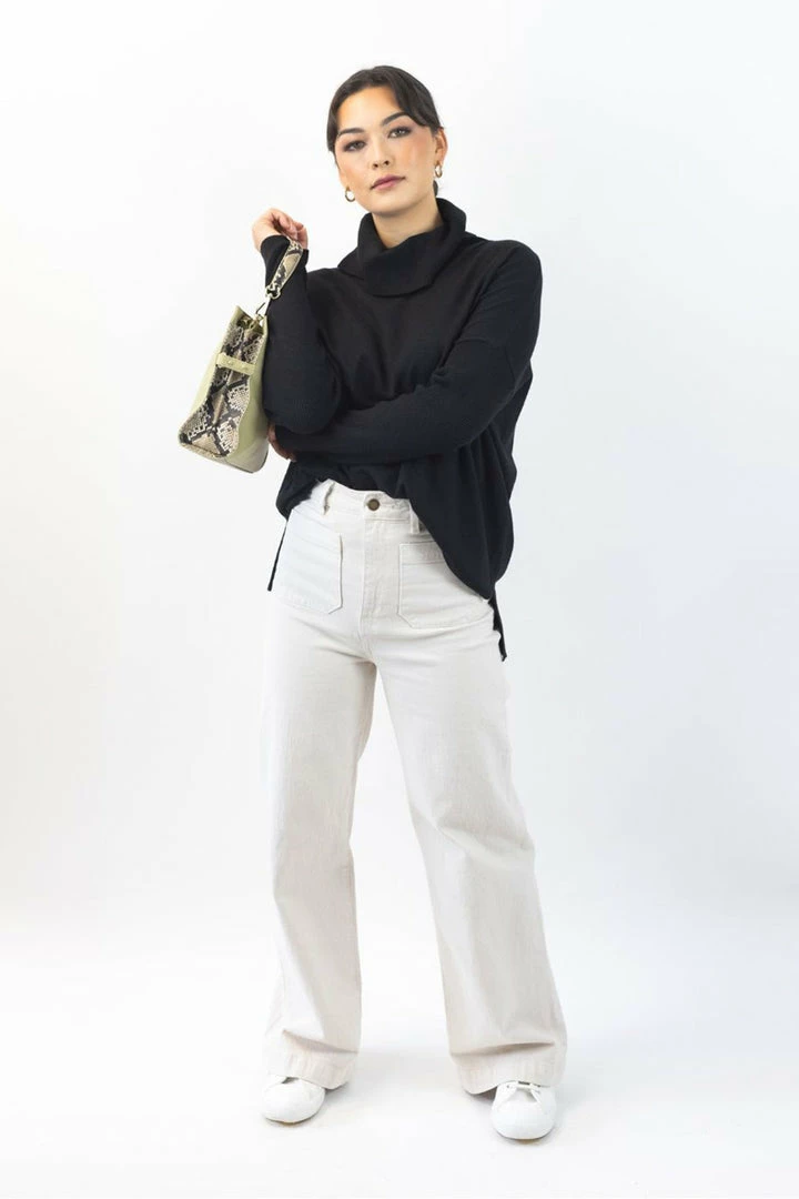 Gorgeous and stylish! This rolled neck knit will keep you toasty and warm. The Vital Jumper has a rolled ribbed neck and hemline and super soft knit fabric! Pairs perfect with pants and boots for that casual look!