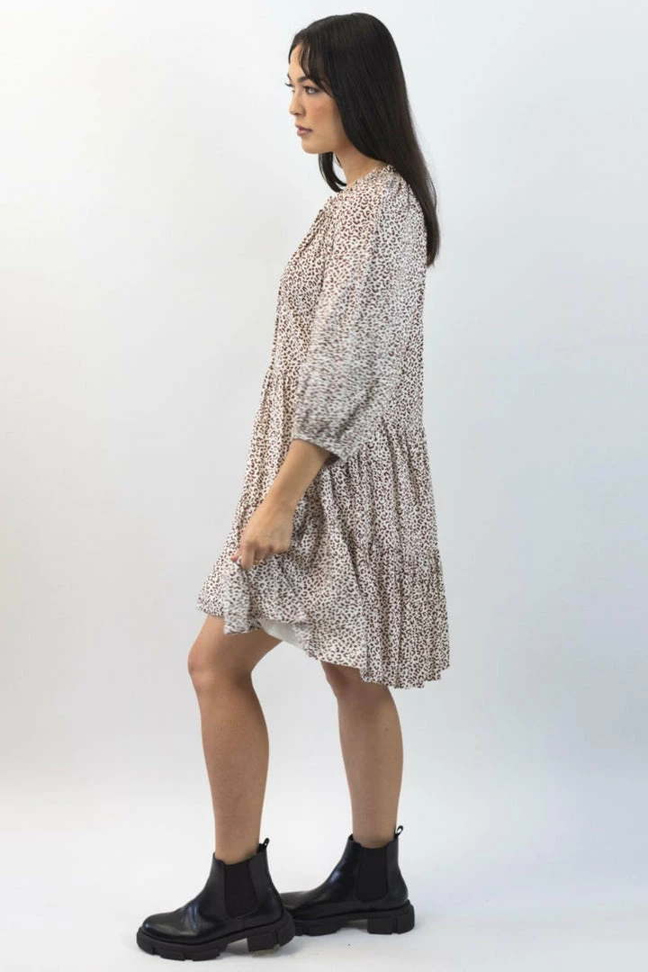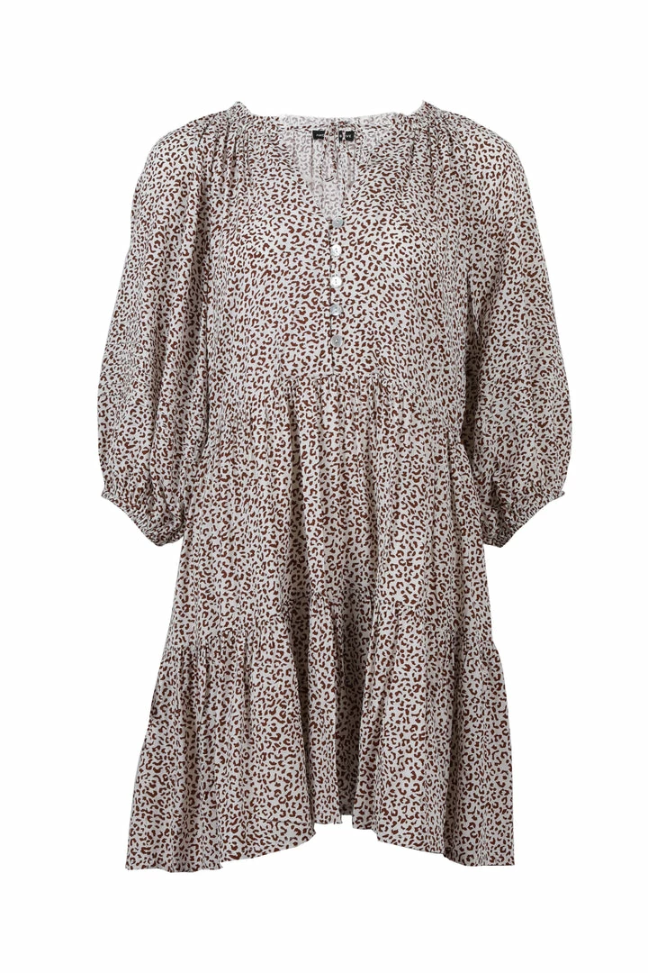 This funky mini dress is the perfect addition to your summer wardrobe! Slip on your slides for a day look pair with a blazer and chunky boot, this dress will be your new go-to! Featuring long sleeves, v neck, and front button detailing creating a beautiful fit.