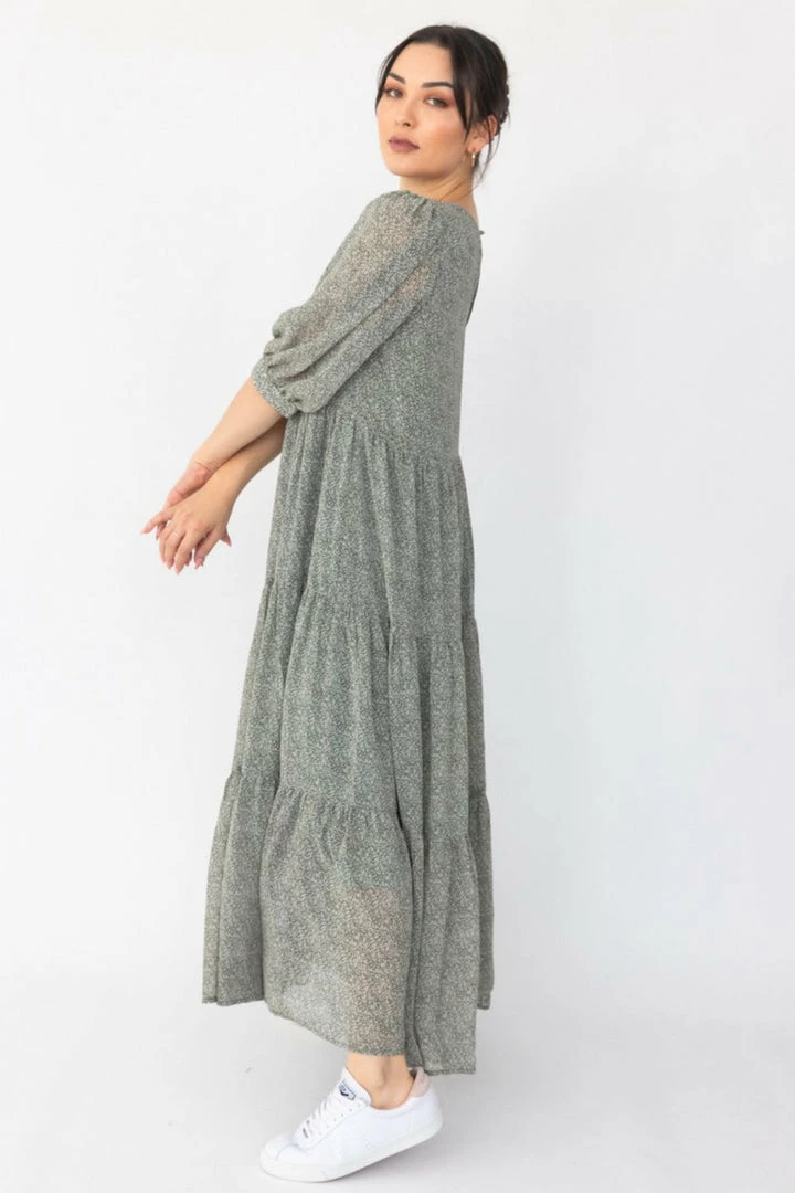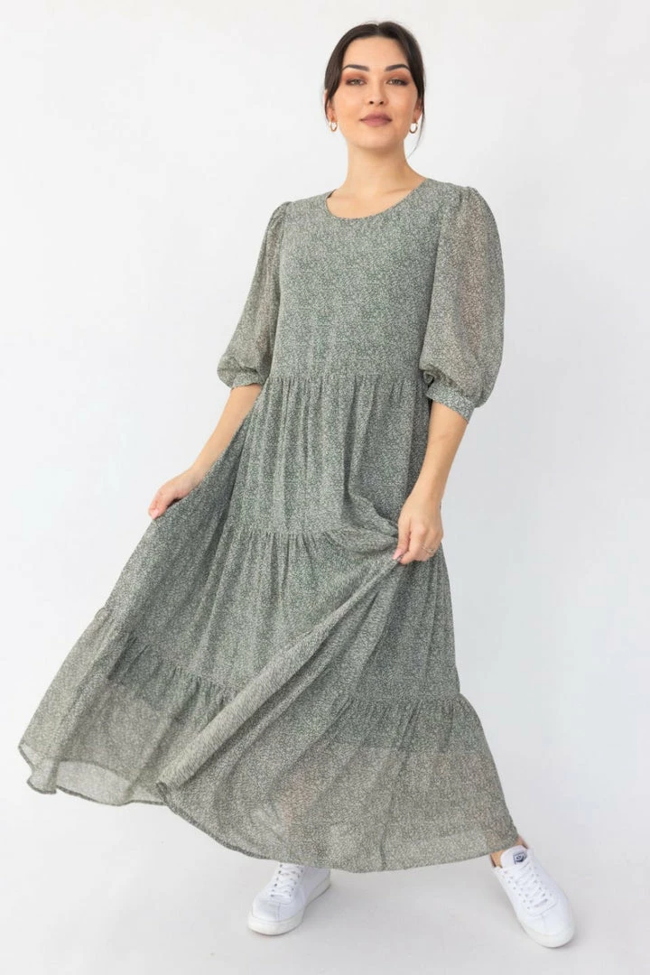Become centre of attention in the Lucid Puff Sleeve Tiered Maxi Dress. Featuring its soft georgette and tiered skirt, it’s the perfect dress for every occasion.