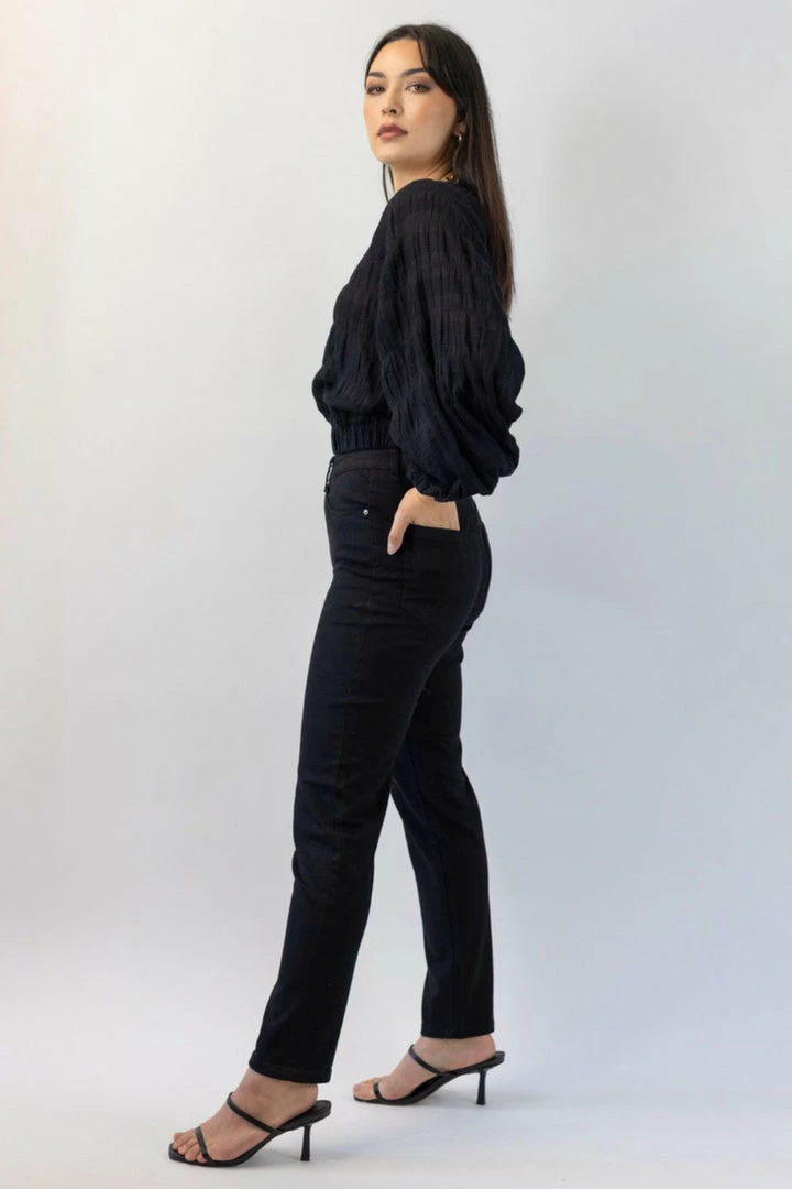 A classic black straight leg jean that you need in your wardrobe. With just enough stretch to keep you comfortable whether relaxing or on the go.