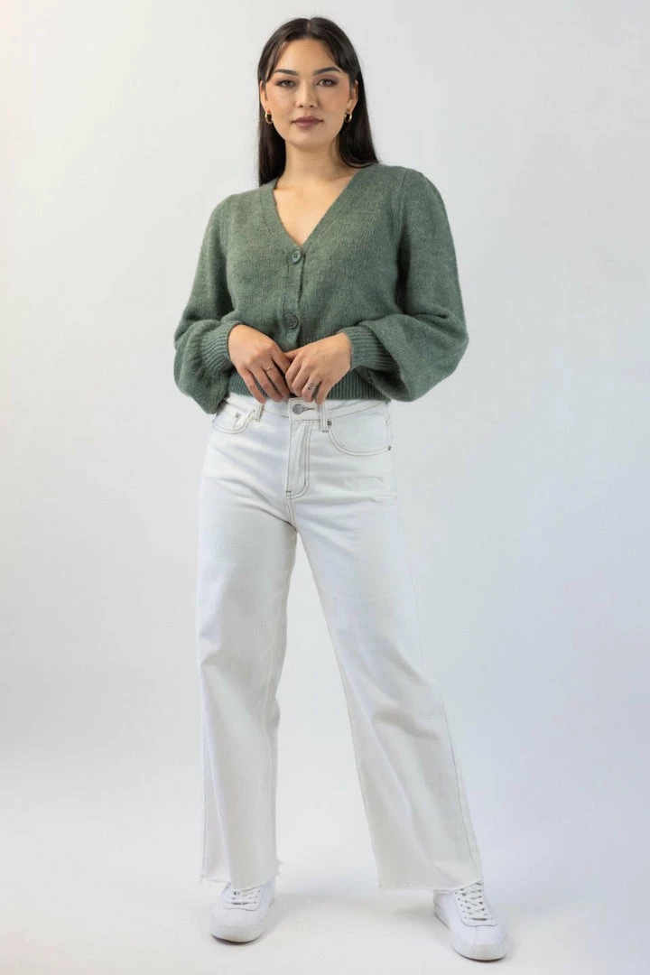 How can you not fall in love with the colour of this super soft knit cardigan. The Spirited soft khaki cropped cardigan will be your go to for the cooler months.We love to pair this with jens and a white tee or style it up with a slip dress.