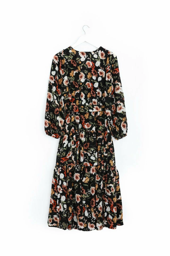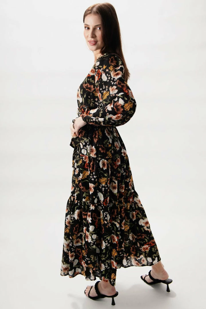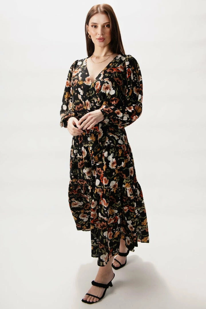 Among The Brave Twilight Large Black Floral LS Tiered Maxi Dress Fashion