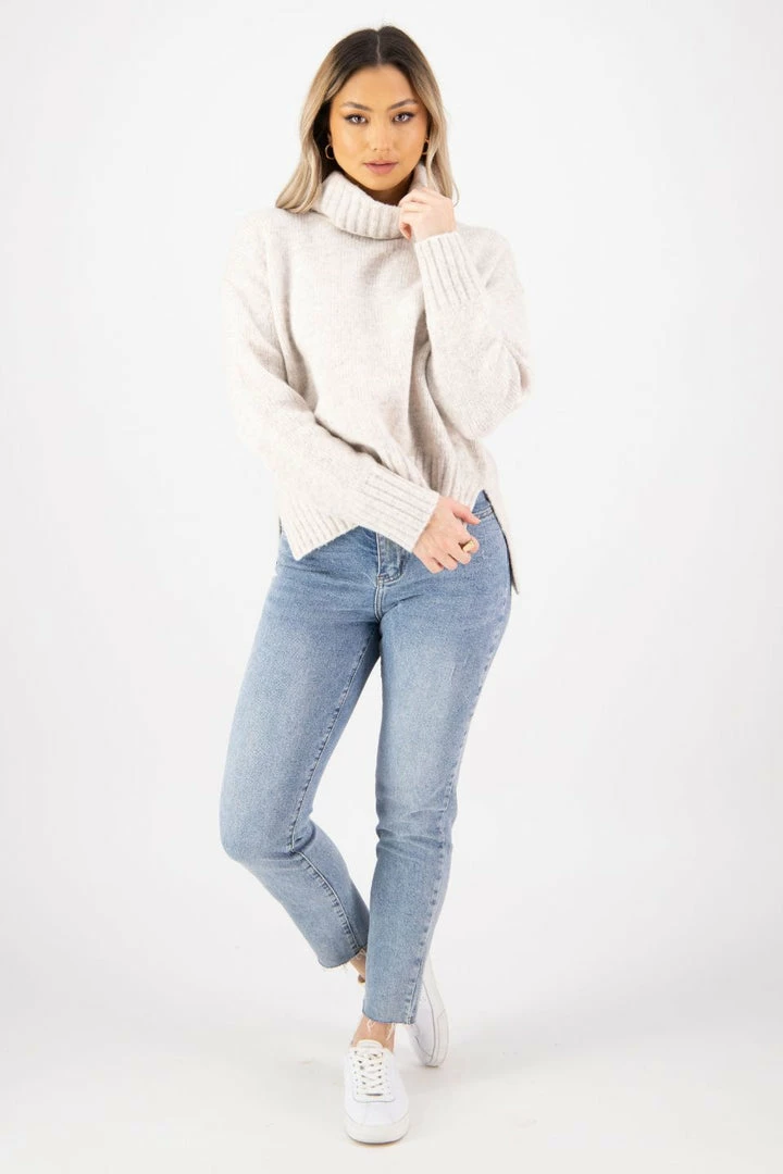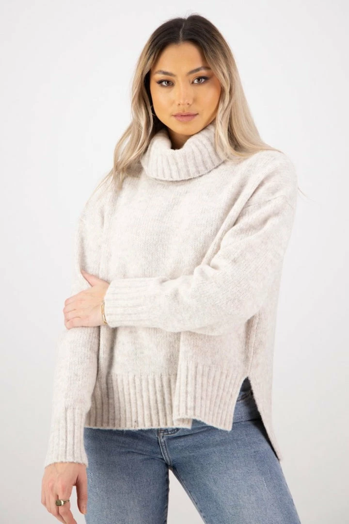 Among The Brave Zealous Oat Super Soft Raglan Roll Neck Knit