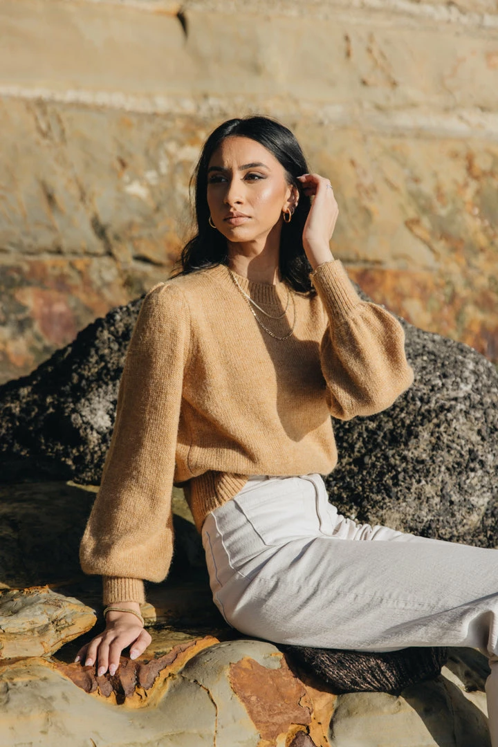 Add some zest to your wardrobe with this gorgeous Zesty Knit! Ultra-fashionable, this stunning top features stylish balloon sleeves and is made from the softest mohair blend in a gorgeous golden colour.