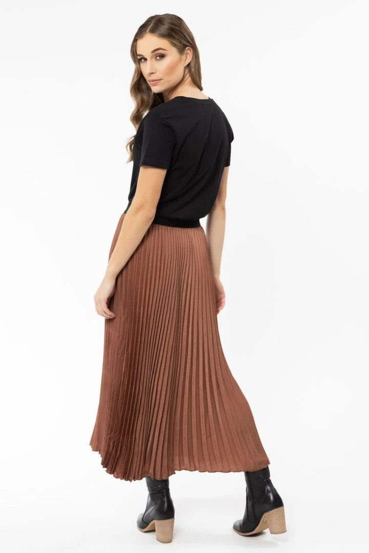 Billie The Label Fashion Sunray Rust Satin Pleated Midi Skirt