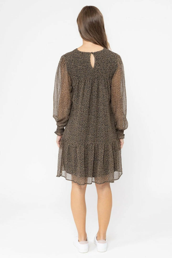Billie The Label Hug Me Black Ditsy Shirred LS Mini Dress Fashion