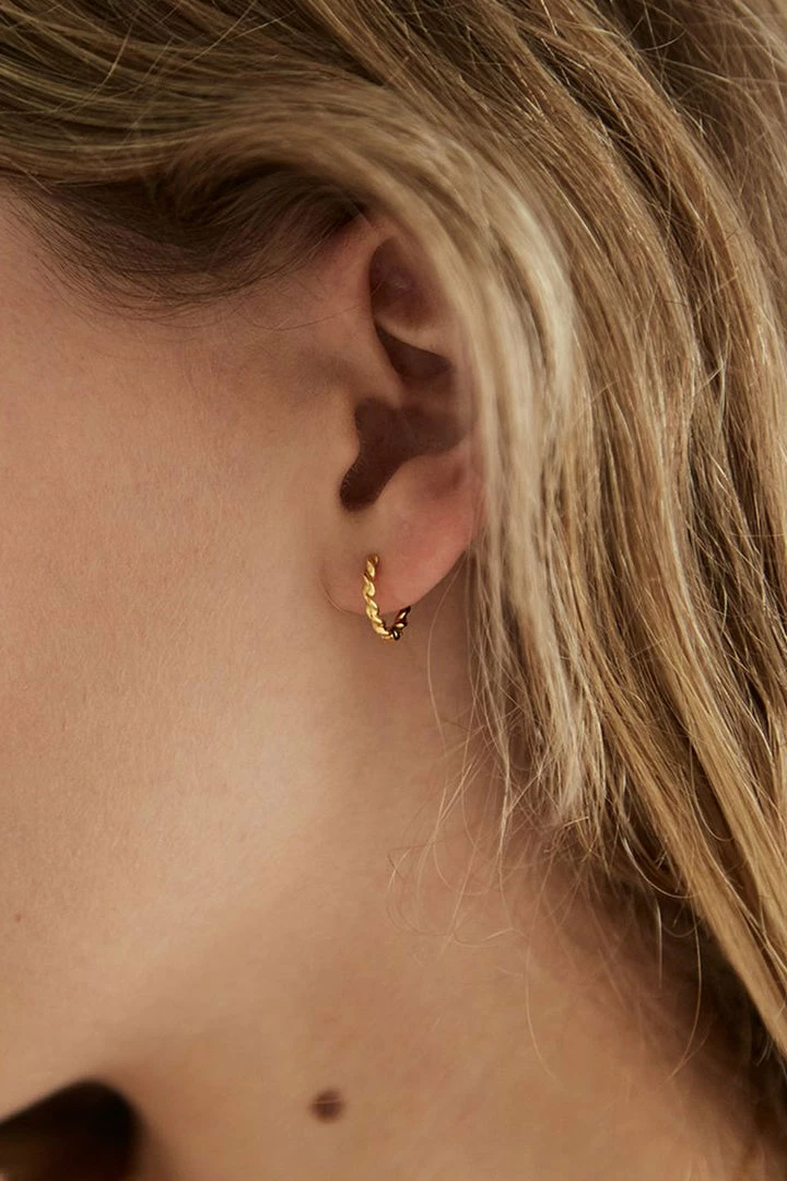 18k Gold Plated, 925 Sterling Silver Base, Small vintage-inspired sleeper earrings. Perfect for layering across multiple piercings