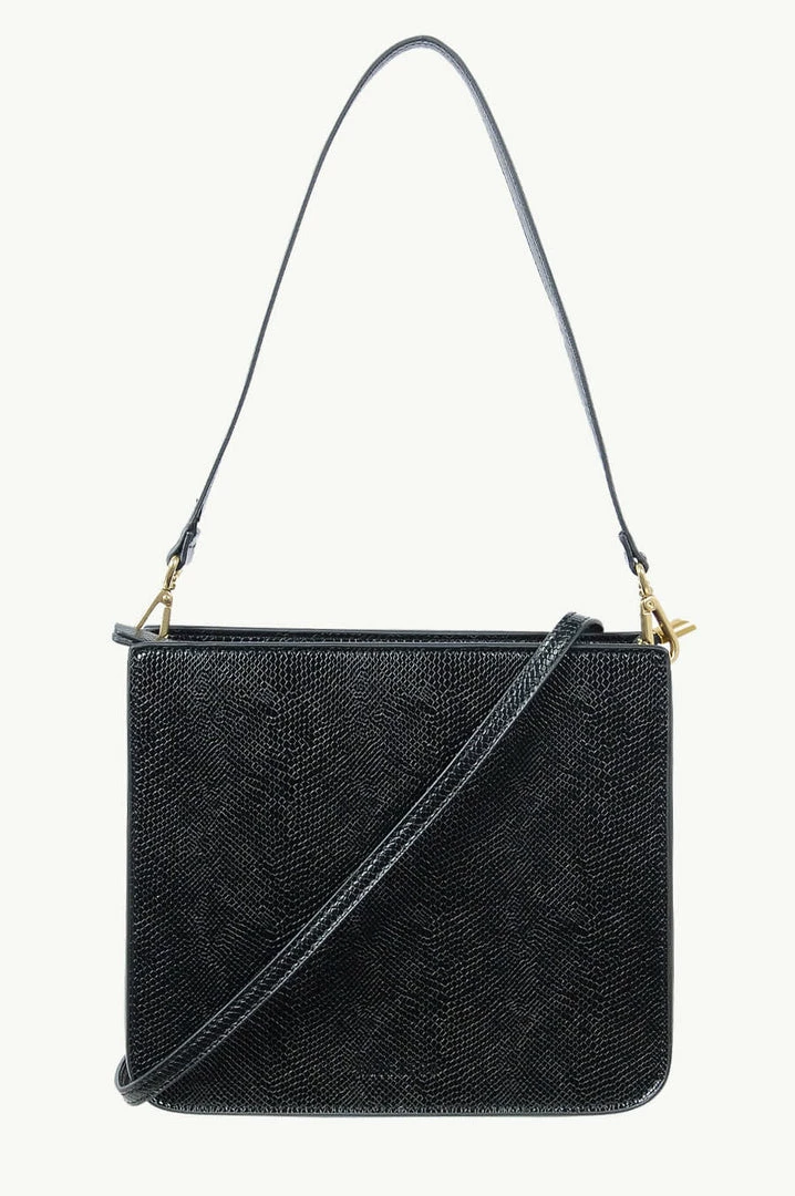 – Detachable shoulder strap and crossbody strap