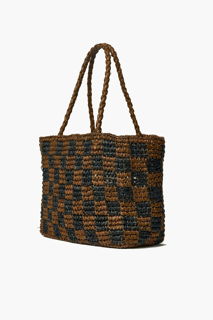 Brie Leon Check Small Walnut Black Straw Raffia Woven Tote