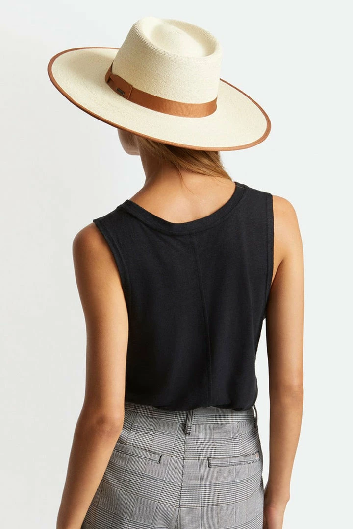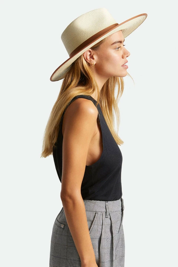 The Jo Straw Rancher Hat is a wide brim, sophisticated straw hat designed with fine Tripilla straw for a high-quality look and feel. Finished with a grosgrain band, brim taping, and metal headwear plaque, this one is great for taking on adventures or dressing up any everyday look.