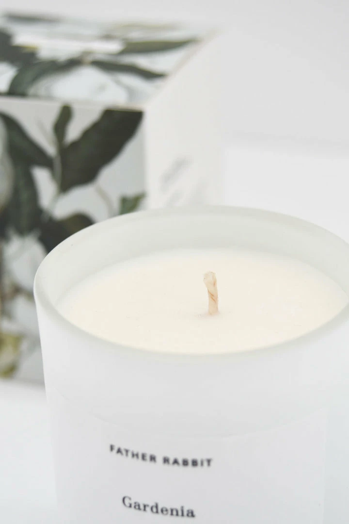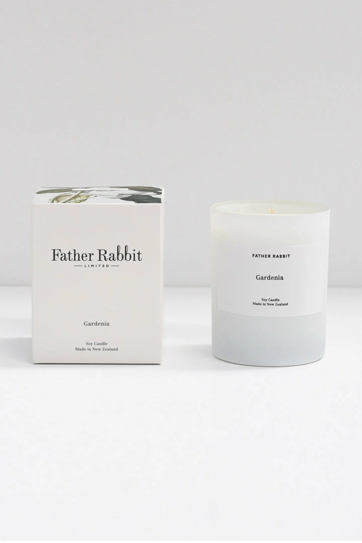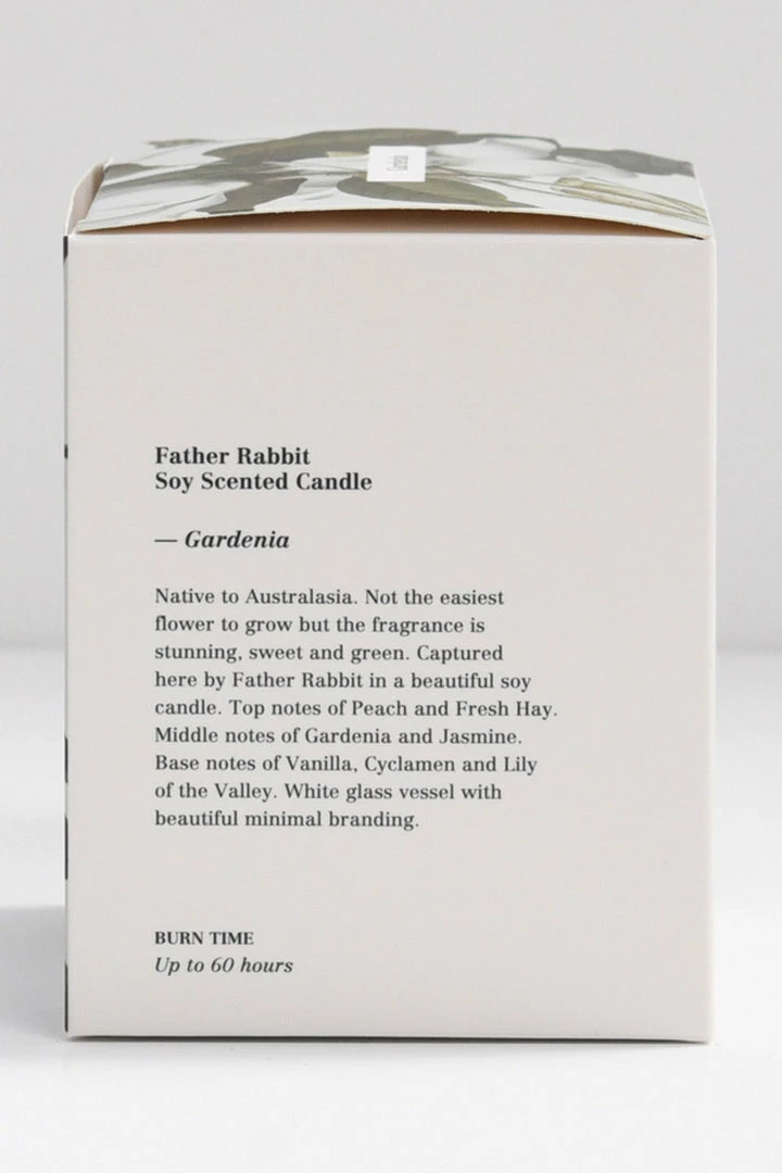 Native to Australasia. Not the easiest flower to grow but the fragrance is stunning, sweet and green. Captured here by Father Rabbit in a beautiful soy candle. Top notes of Peach and Fresh Hay. Middle notes of Gardenia and Jasmine. Base notes of Vanilla, Cyclamen and Lily of the Valley. White glass vessel with beautiful minimal branding.