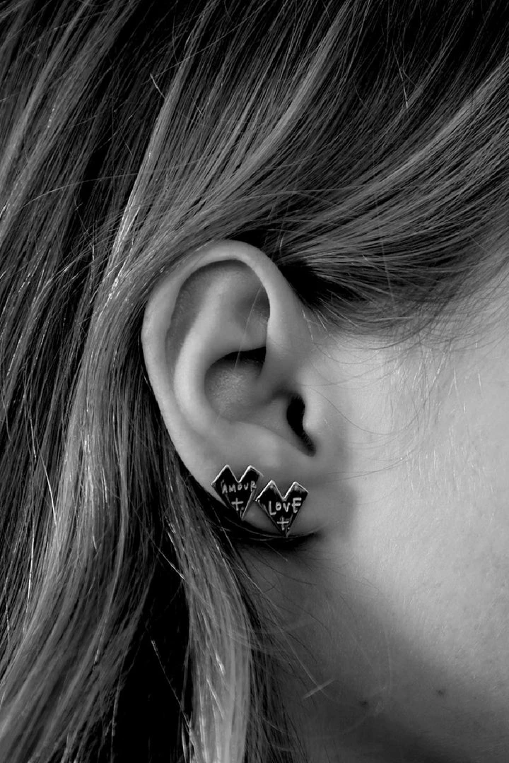 Amour is love & love is amour. This set gives you the way to say it in both languages on each ear lobe or double them up. Our Love Is Amour Earrings are made from 925 sterling silver.