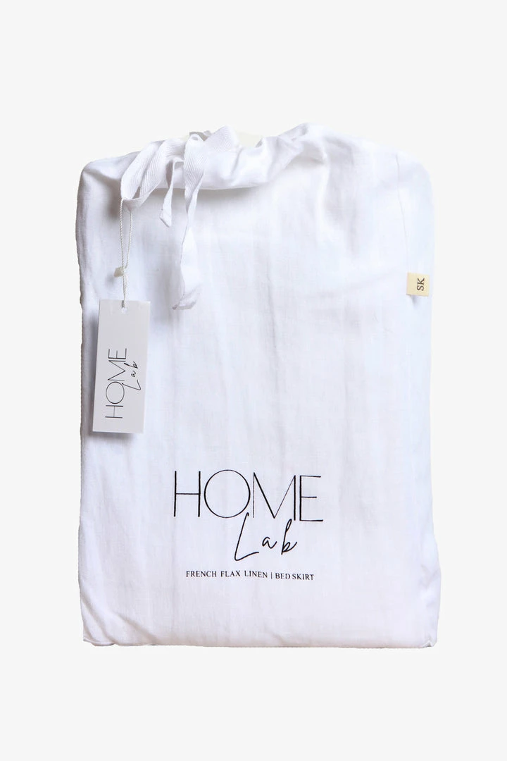 • Home Lab 100% French Linen Bed Skirt King White