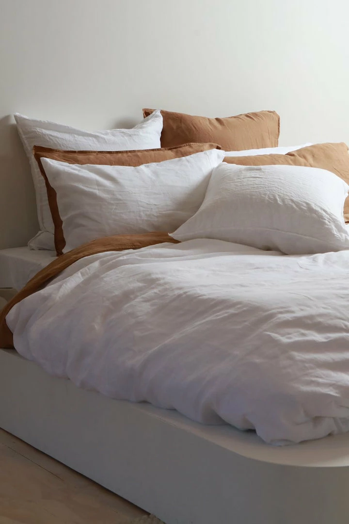 Woven from 100% pure flax linen, Home Lab’s premium linen Duvet Sets are the perfect addition to luxurious bedroom styling and comfort at an affordable price point.