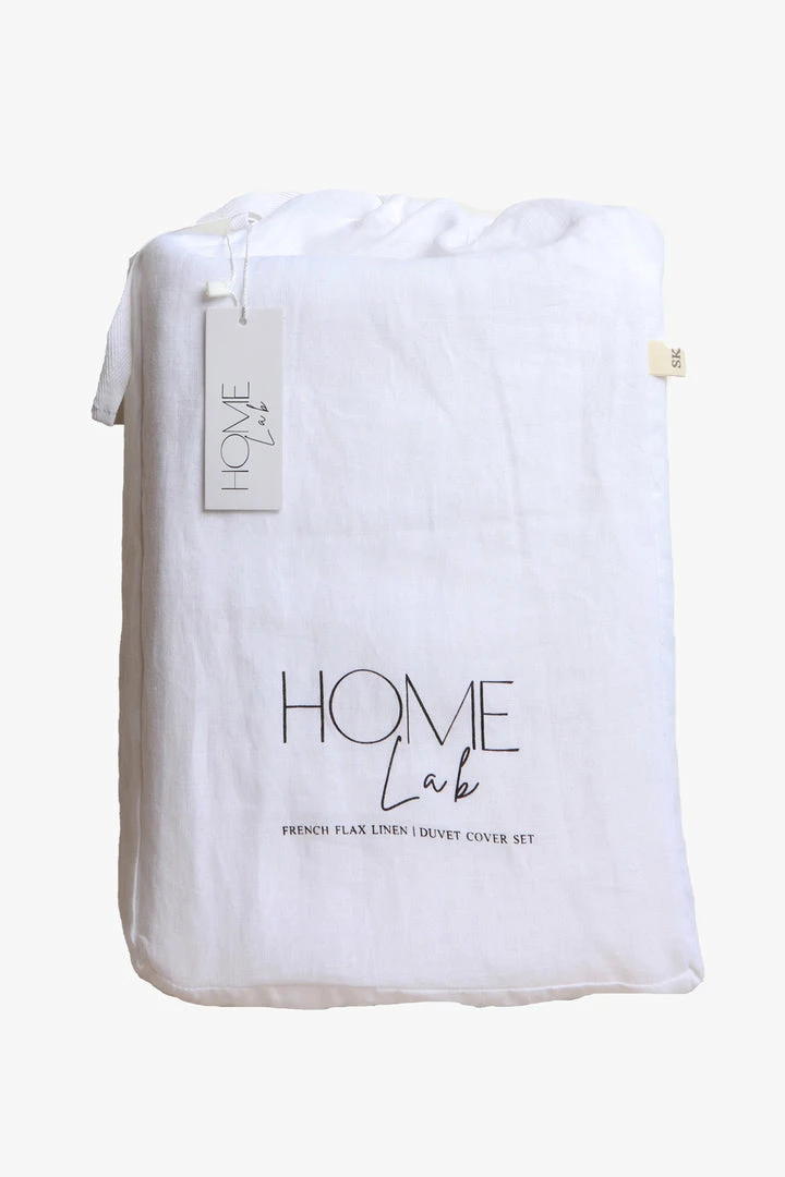 Woven from 100% pure flax linen, Home Lab’s premium linen Duvet Sets are the perfect addition to luxurious bedroom styling and comfort at an affordable price point.