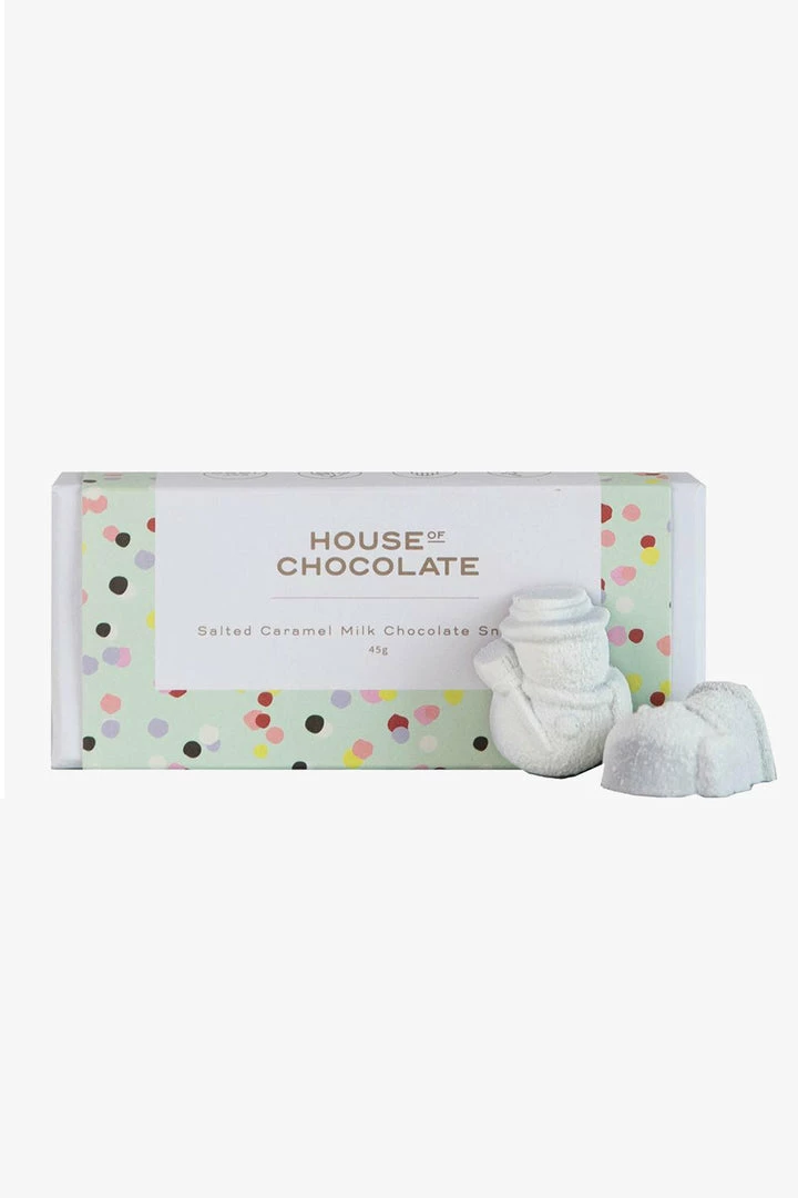 Dont be fooled by their Frosty exterior, these little guys are made with a Milk Chocolate shell, filled with our famous ooey gooey Salted Caramel. Hand sprayed snowmen bonbons, with a frosty white finish!