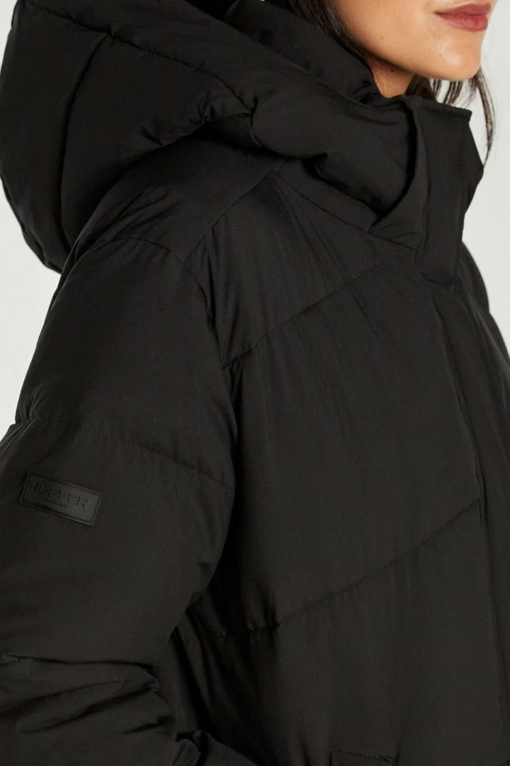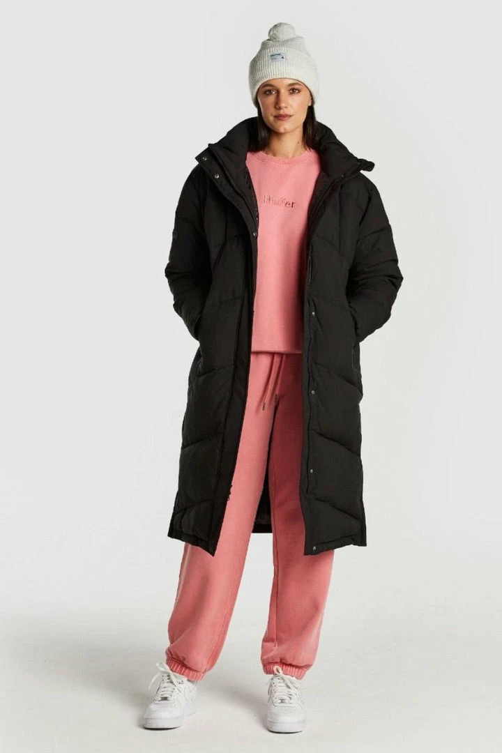 Feel toasty this winter wearing this chic longline puffer jacket from Huffer.Â