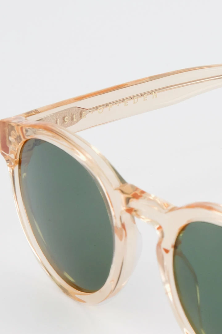 Rounded, smooth, no hard edges. This rounded frame is a classic shape and keeps things simple with a narrow arm that gently curves around the ear for a snug and secure fit. A slightly elevated, wide bridge keeps the frame comfortable on the nose and the focus on the circular shape of the lens.