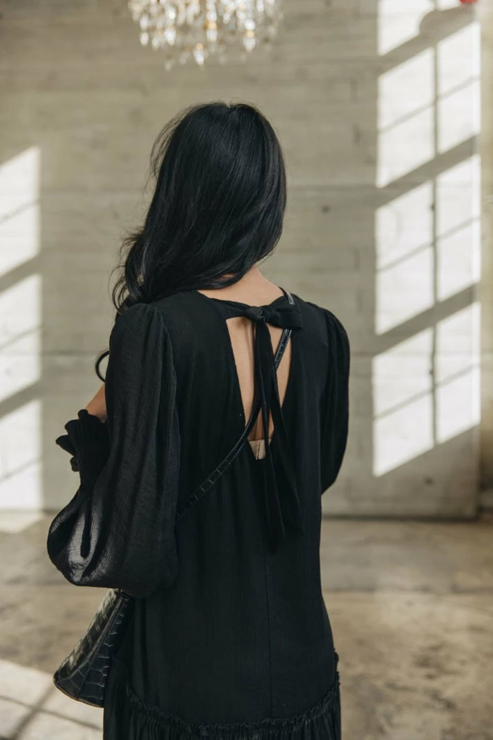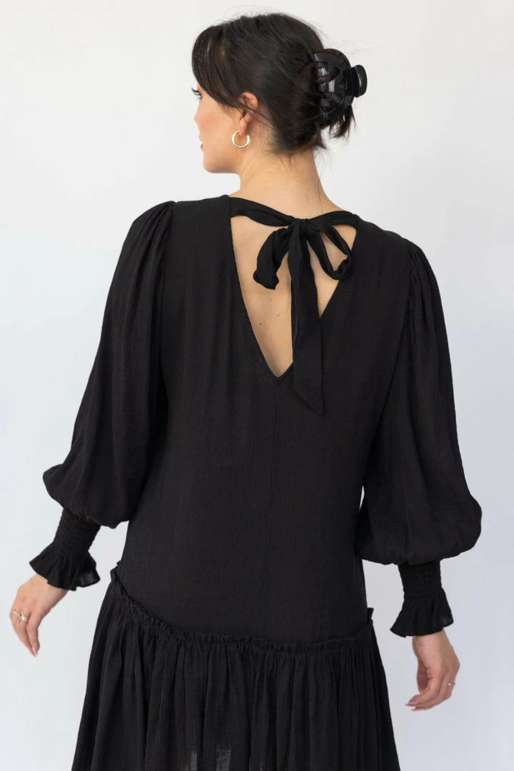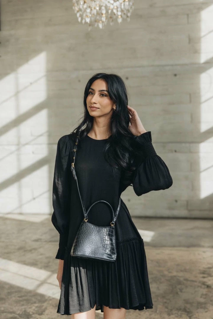 Have a feminine chic moment in our Bria dress from Ivy + Jack! This pretty mini features a high neckline, cuffed long sleeves and a dropped waist with frill detailing. It’s the perfect piece for those upcoming day events or can be paired with boots and a blazer for an evening look.