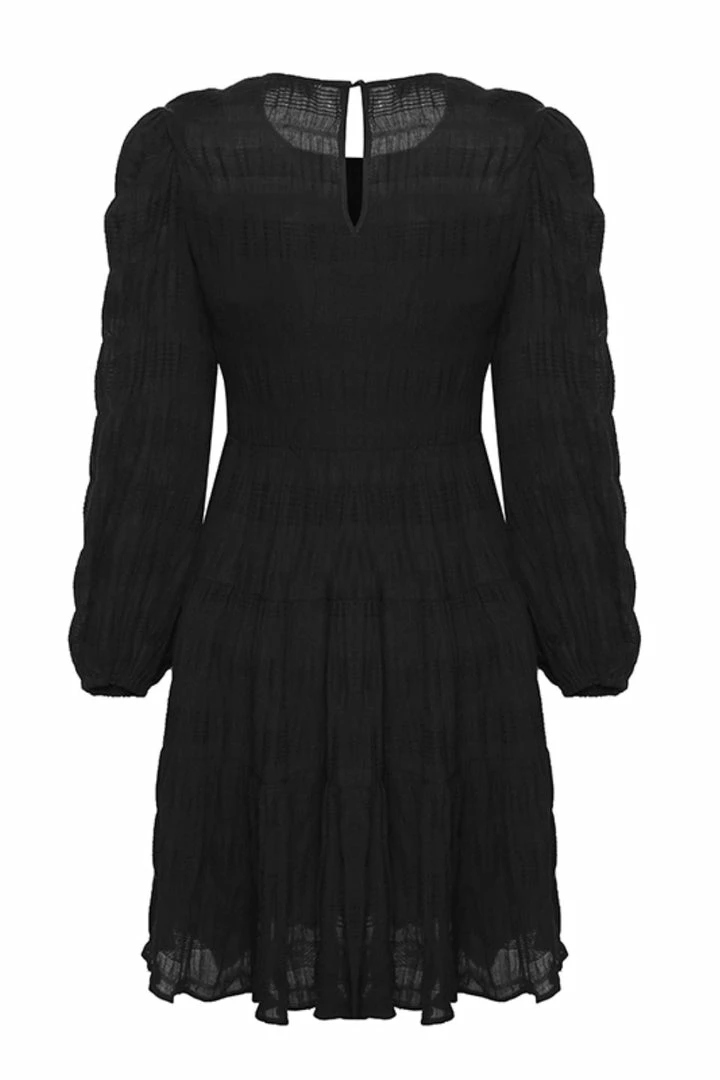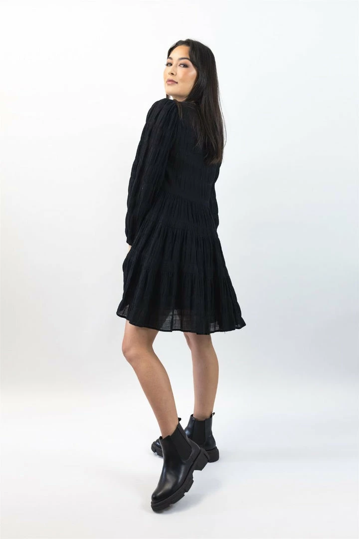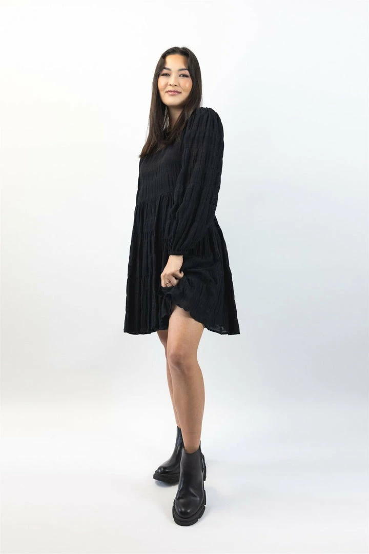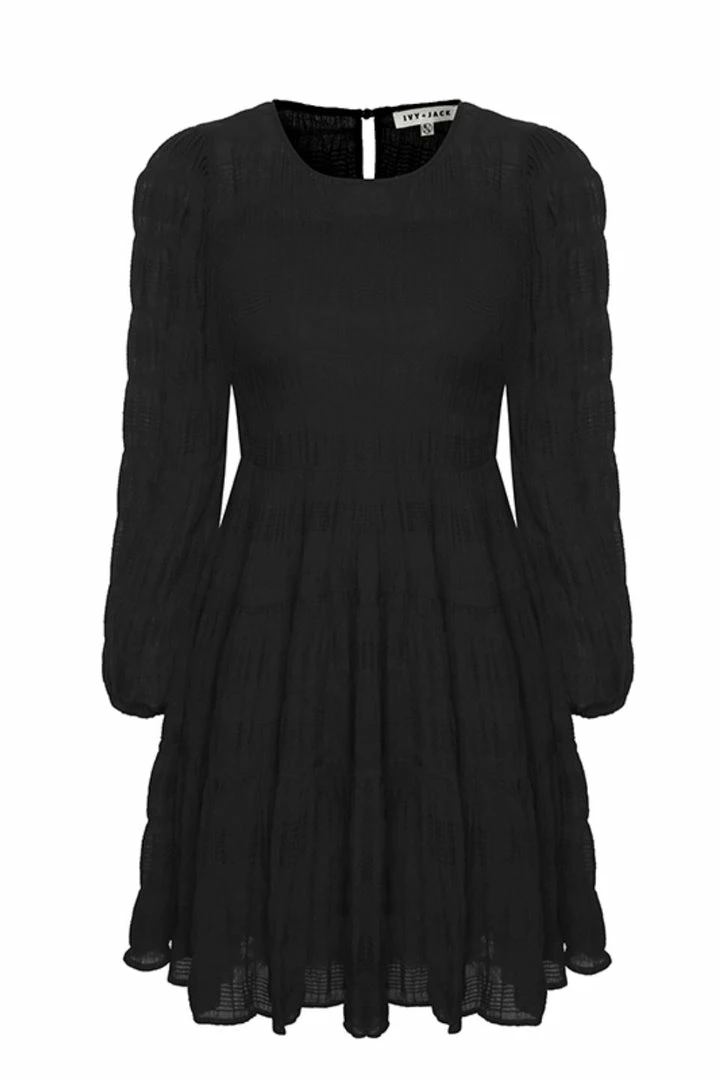 This gorgeous Bella mini dress by Ivy + Jack is the perfect transeasonal dress you need in your wardrobe. This mini features cuffed long sleeves, Shirred tiered skirt and back keyhole clasp. We love to style this dress with sneakers and a blazer or warm it up with some black tights and boots.