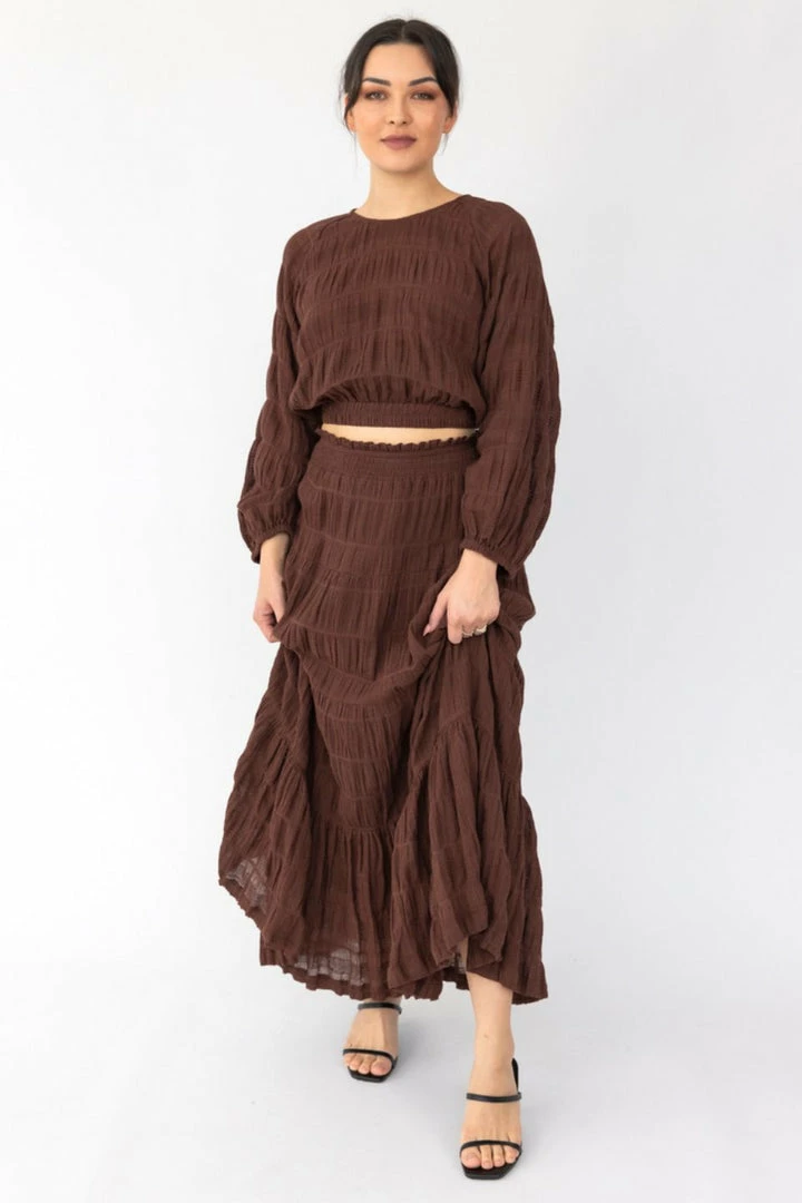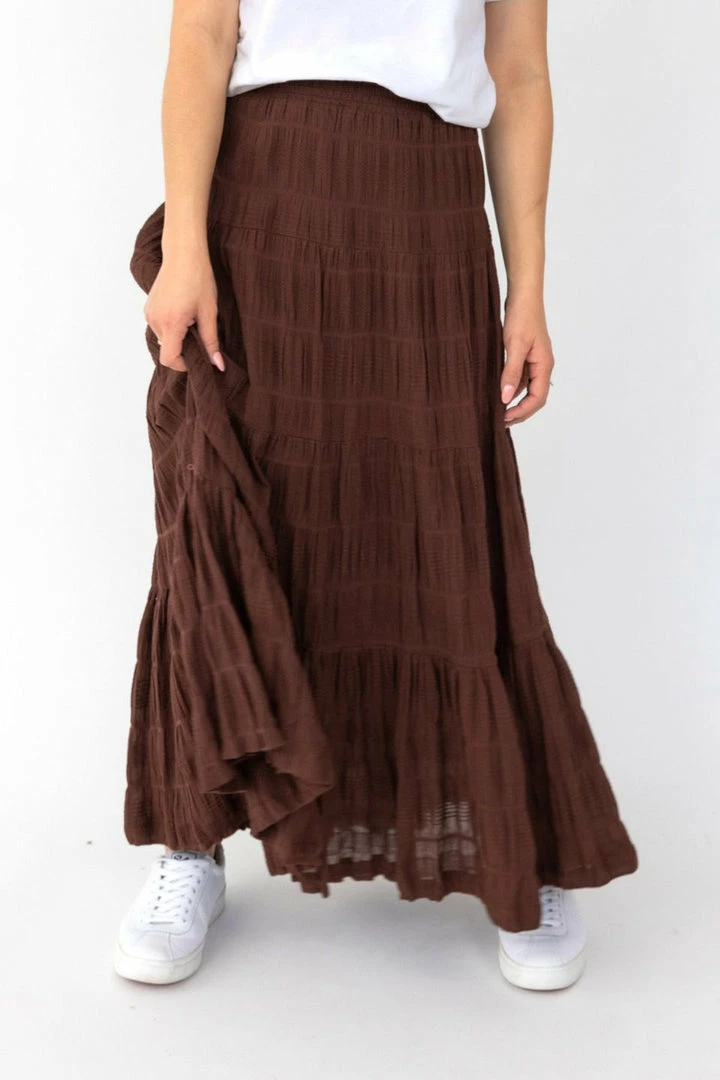 The Charming skirt is a must-have staple in your wardrobe! Make a statement in this stunning cocoa-coloured maxi, perfect for every occasion.