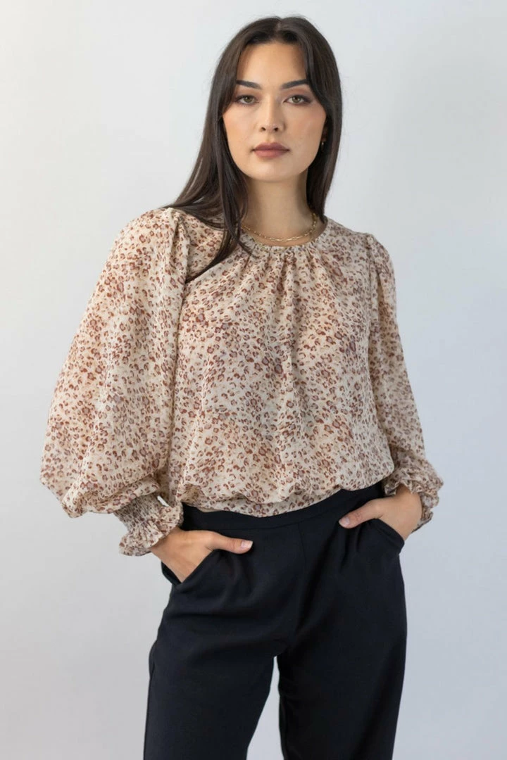Wear the Grace animal print blouse all season long! This versatile piece can be taken from day to evening thanks to its gorgeous balloon sleeves and fun animal print.