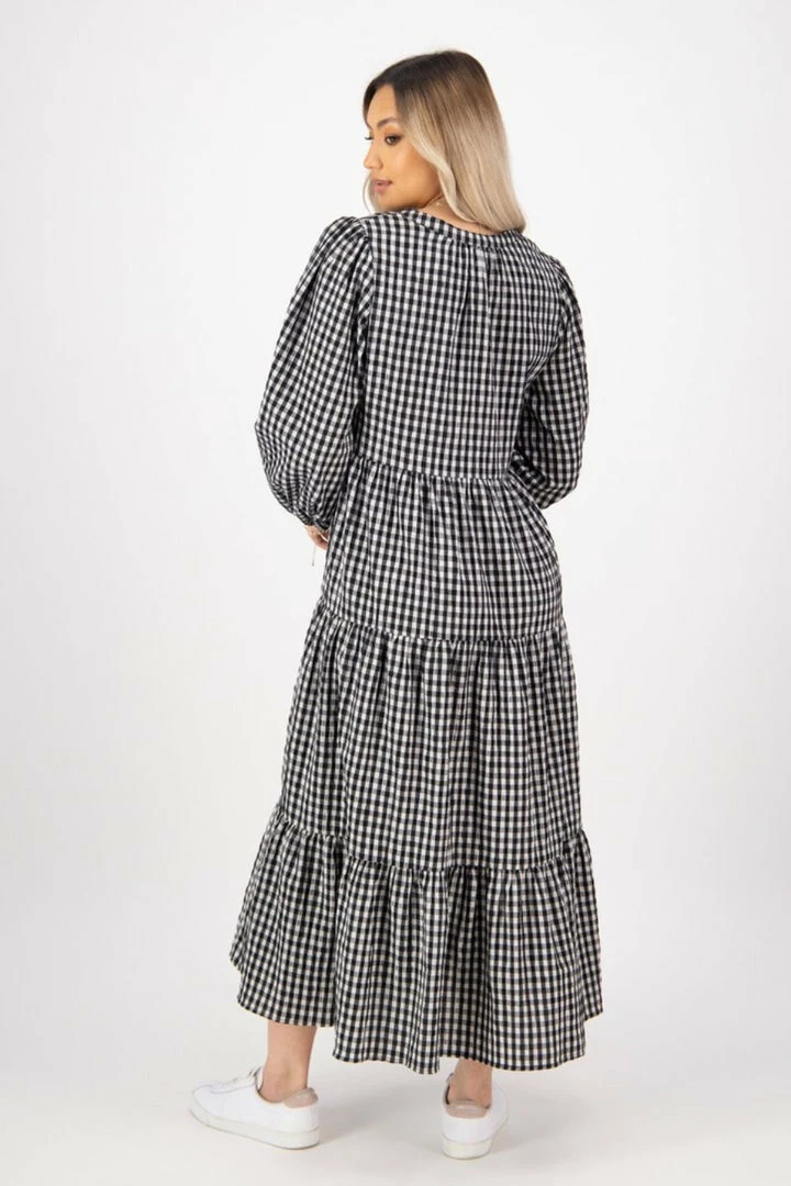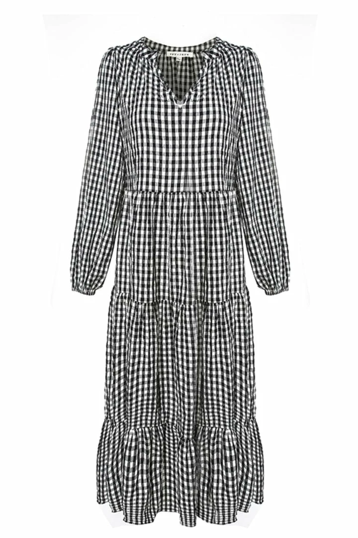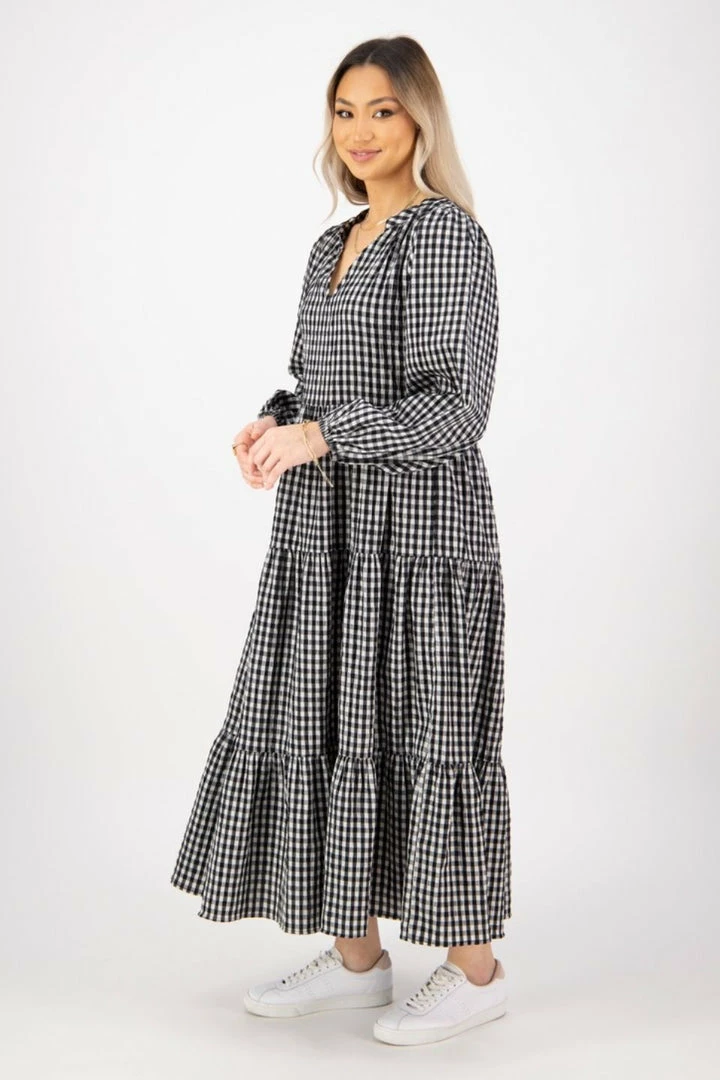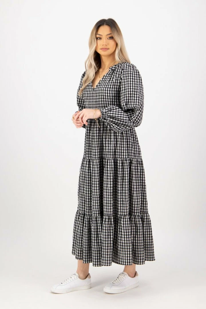 We are in love with the Kendall black check midi dress by Ivy + Jack featuring a stunning V neckline and long blouson sleeves. Pair this dress with heels for a night out or go for a more casual look with your favourite sneakers.