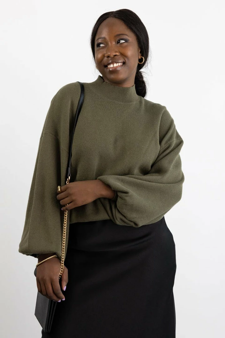 Motivated to look stylish but still want to be comfy? This Motivation Knit Top is a perfect choice! Featuring fashionable balloon sleeves and a high neckline, this stunning top is made from the softest fine cotton knit that you’ll love!