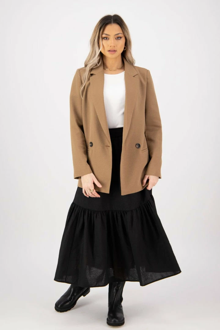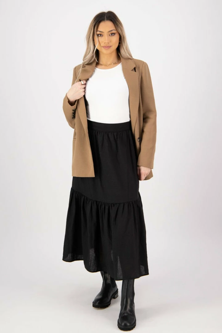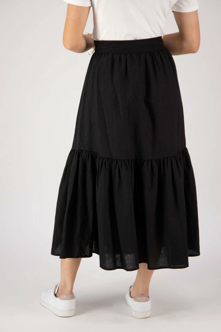 We are obsessed with the Hope Tiered Midi Skirt in black. With its light linen material paired with the flowy tiered design, you’re guaranteed to become just as obsessed as we are!