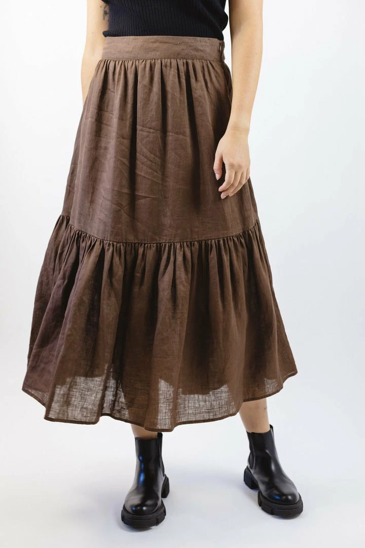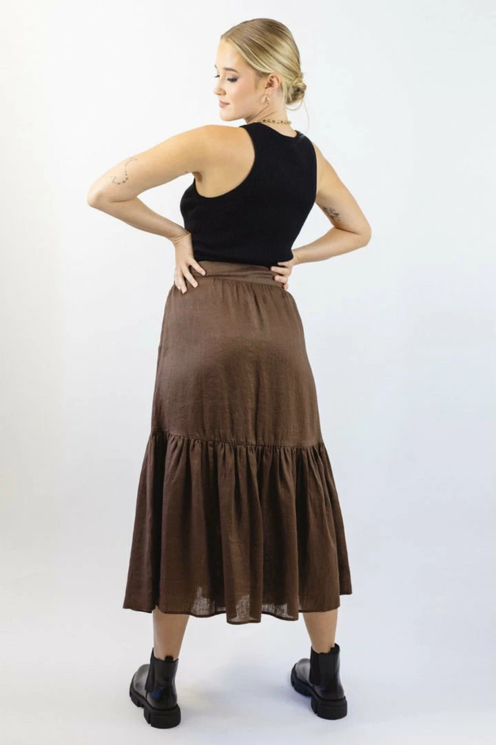 We are obsessed with the Hope Tiered Midi Skirt in chocolate. With its light linen material paired with the flowy tiered design, you’re guaranteed to become just as obsessed as we are!