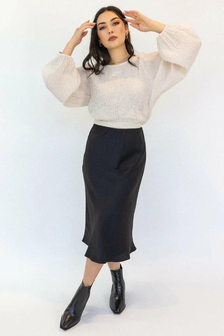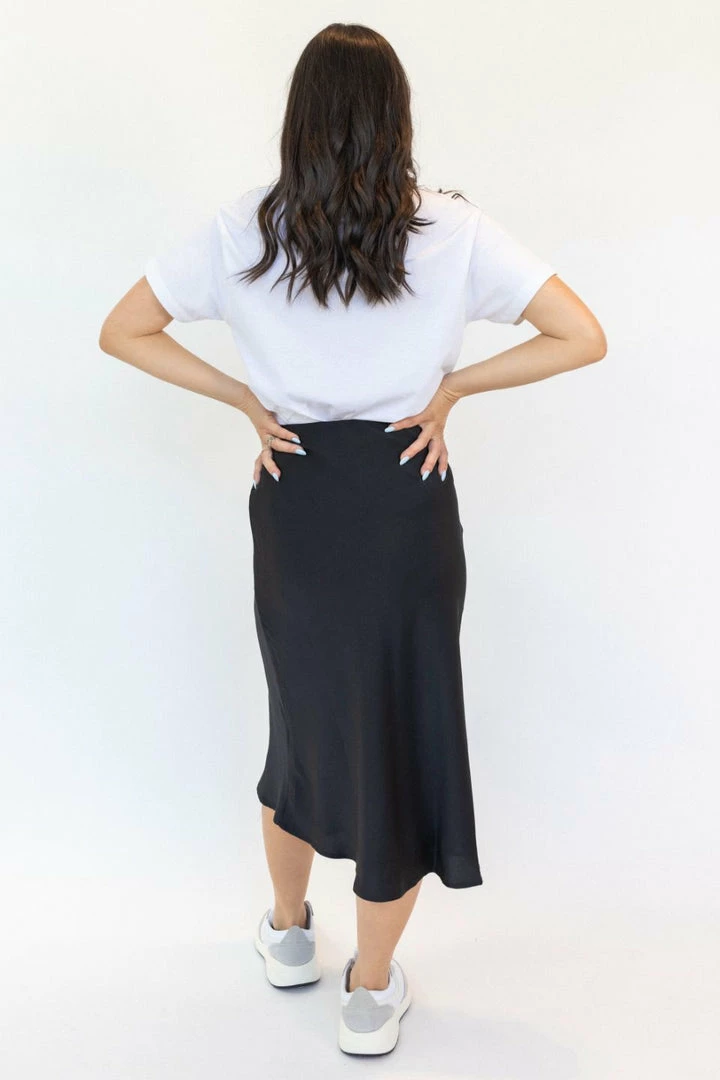 The midi length and satin fabric of our Ivy black skirt gives it a sensuous flowy effect you’ll find hard to resist! The sense of luxury and simplicity of the design might make this your new wardrobe fave.