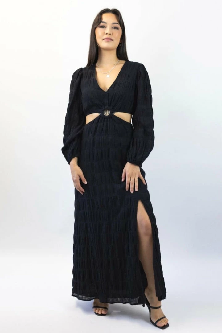 This gorgeous black shirred maxi will be a classic staple in your wardrobe! Wear to your next dinner date with some classics mules or to day trips to the markets with some sneakers.