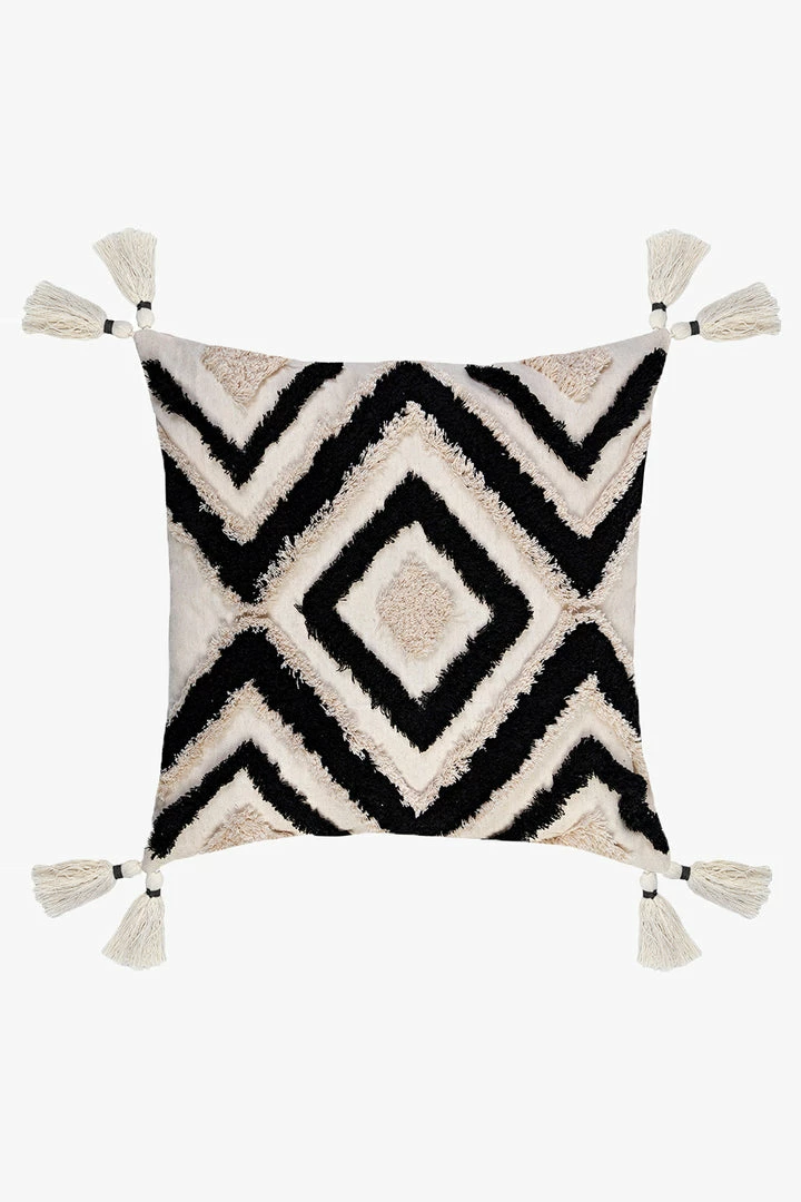 Kerridge Nomad Natural + Black Zigzag Corner Tassel Cushion 45x45cm