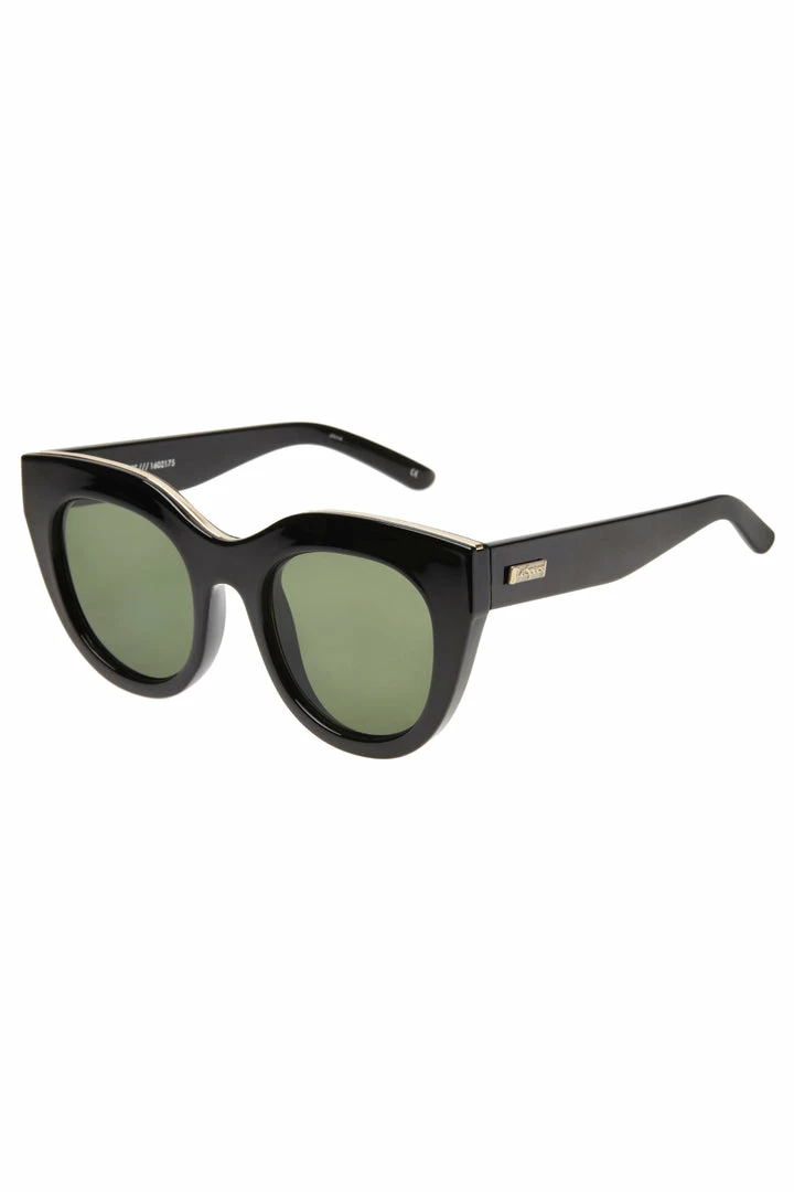 A favourite of Meghan Markle and Olivia Palermo, the Air Heart silhouette is an iconic Le Specs style. With proportions reminiscent of a cat eye, the style is designed in thick black and luxurious metal top bar inlay, then fitted with premium zero base khaki flat lenses. The perfect sunglass to suit all face shapes.