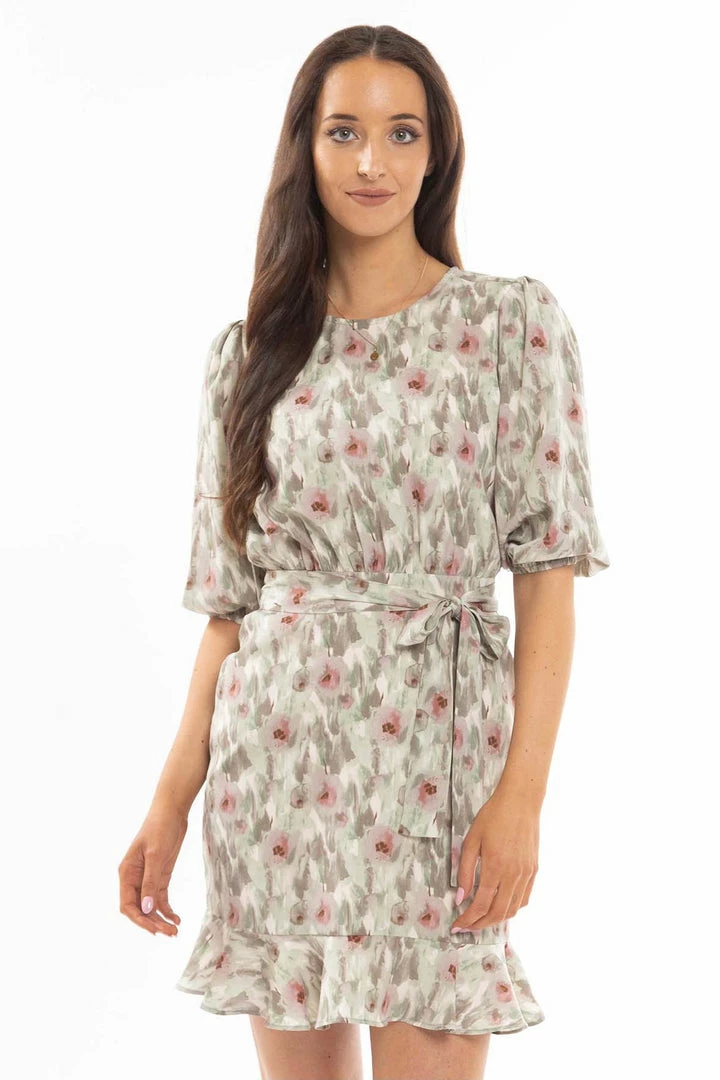 Leila + Luca’s Brilliance Khaki Smudge Mini Dress is sure to be your new favourite! Featuring a gorgeous floral design, frill hem, and flattering tie waist, this dress is the perfect throw on and go outfit that looks good every day of the week.