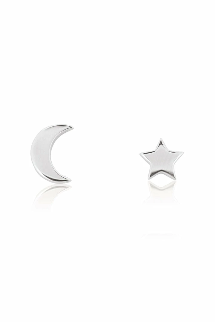 Star and Moon Stud Earrings made in nickel-free sterling silver with a polished finish.