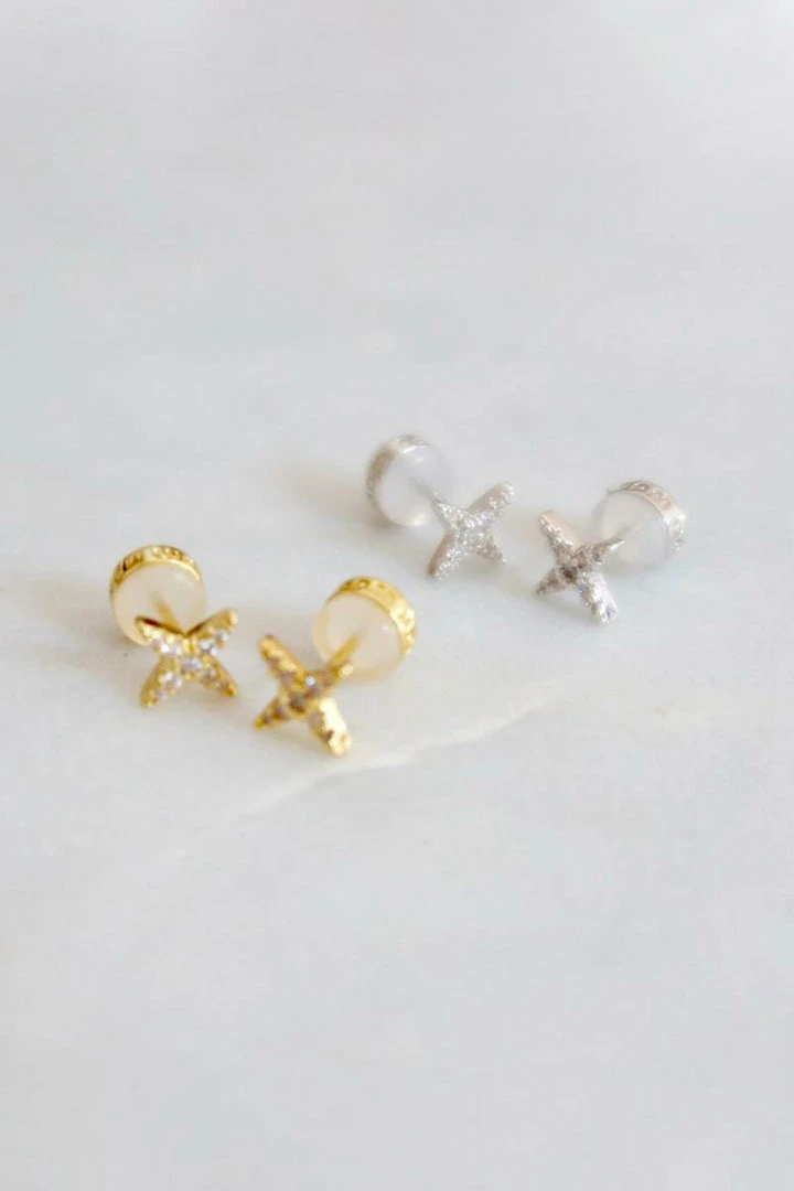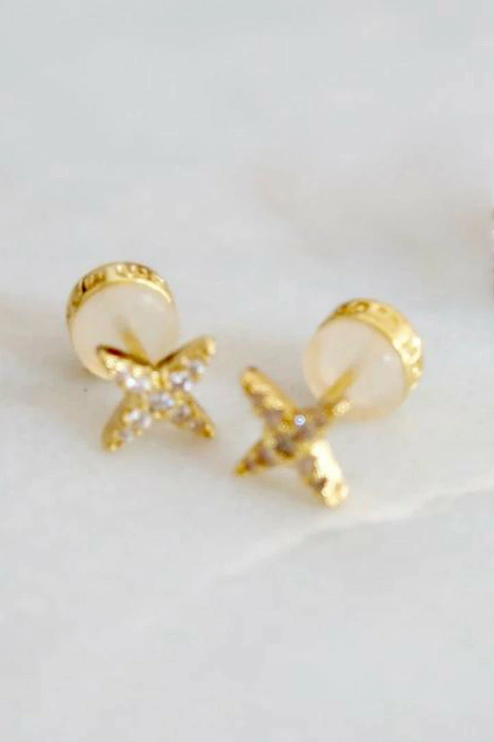 Stunning Tiny Star Studs in GOLD with a brilliant white coloured stone, beautiful on their own or layered for effect!