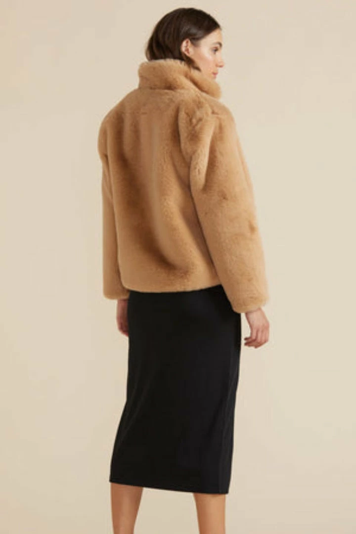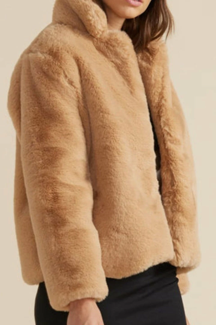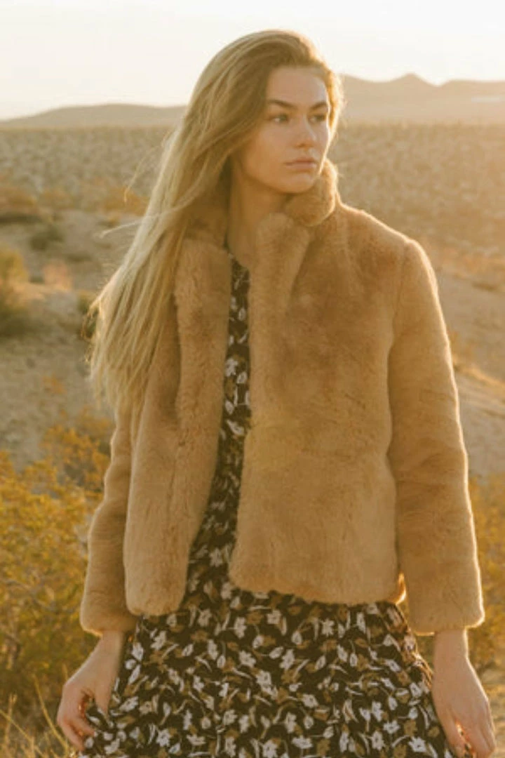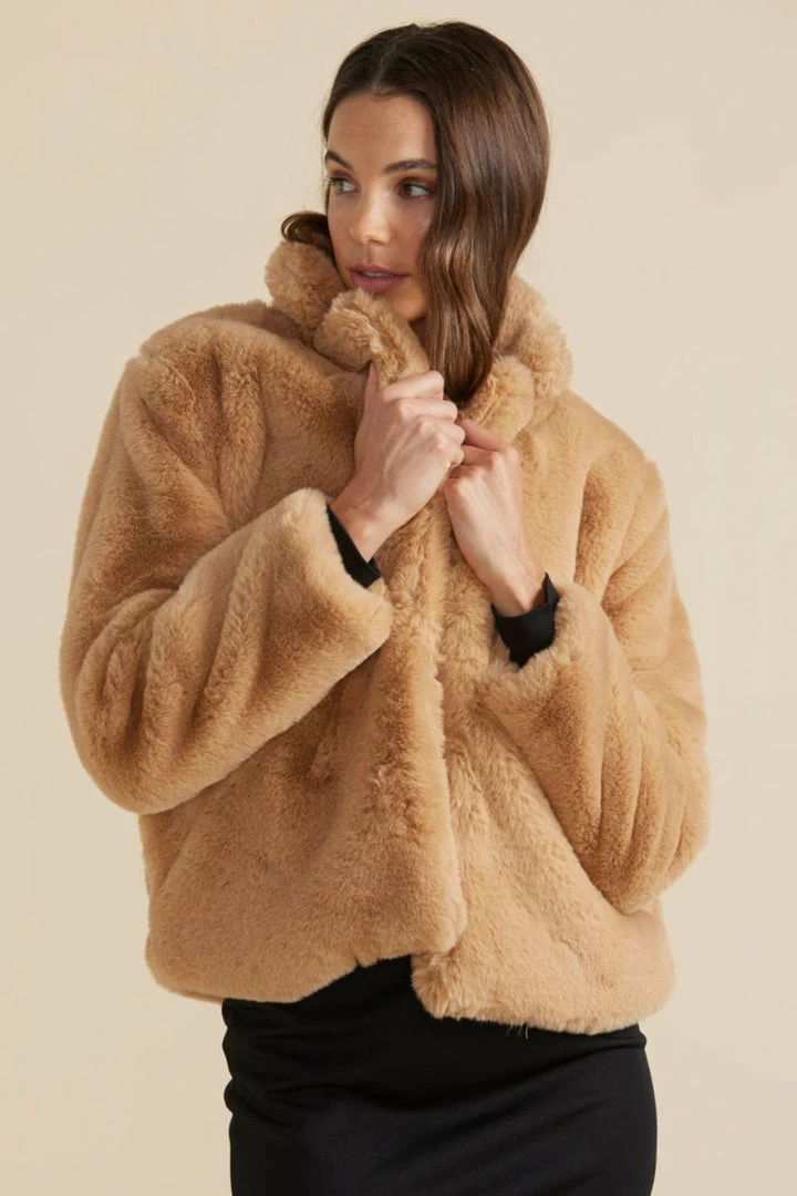 In a luxe faux fur fabrication, the Carmel Faux Fur Jacket will keep you warm and cosy this winter. Featuring pockets in the side seams and a slightly cropped length, in a gorgeous honey colour. Wear with jeans for a casual look or wear over dresses for a night out.