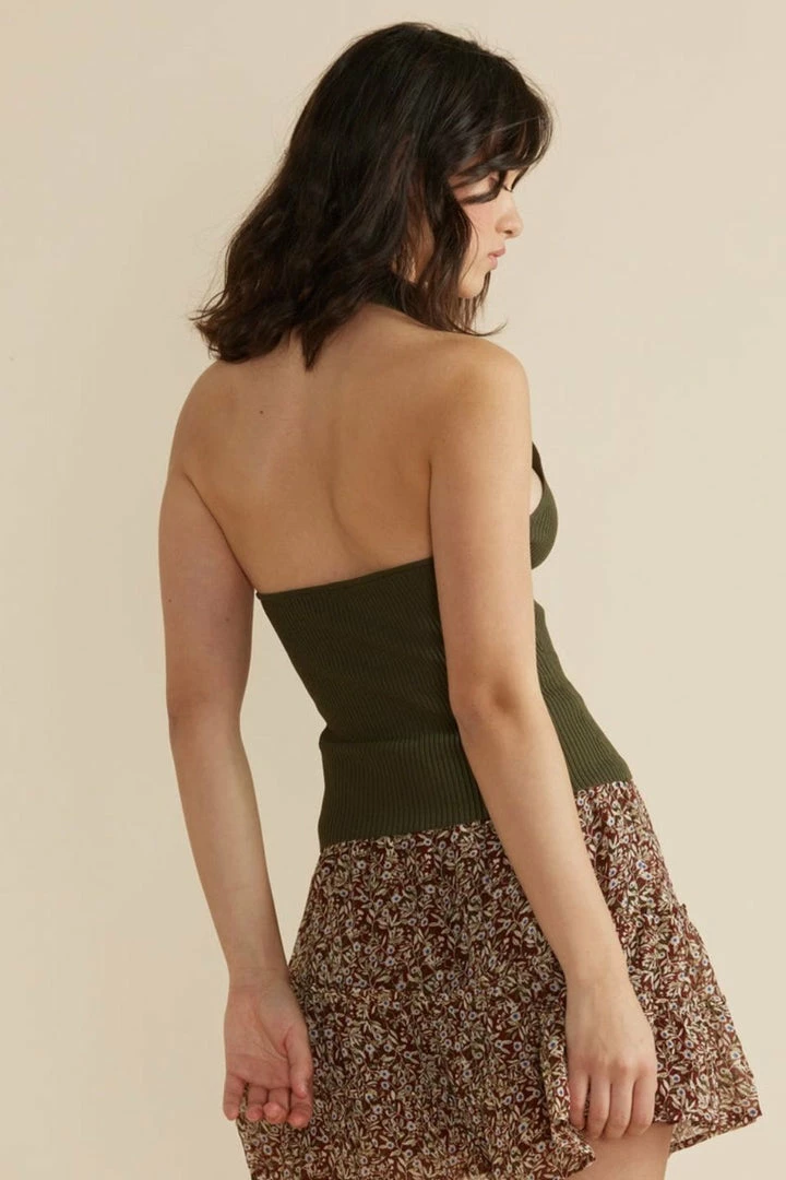 The Mink Pink Maitland Knit Top will be a wardrobe staple. Featuring a ribbed design in a halter shape that can be worn various ways.
