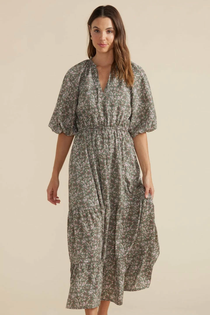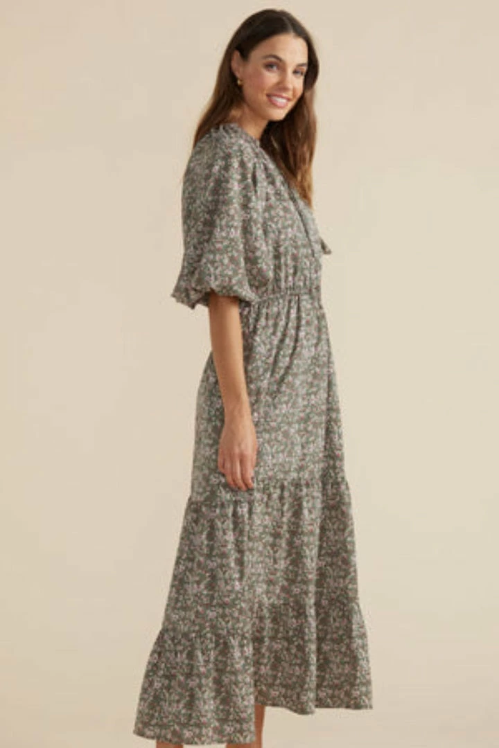 For the perfect all rounder look no further than the Neveah Midi Dress. An easy to wear shape with a blouson bodice, tiered skirt and an open neckline with ties.