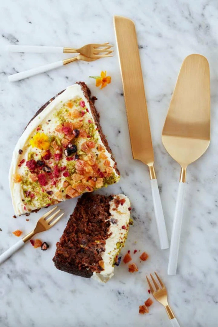 – Match with our set of 4 cake forks.
